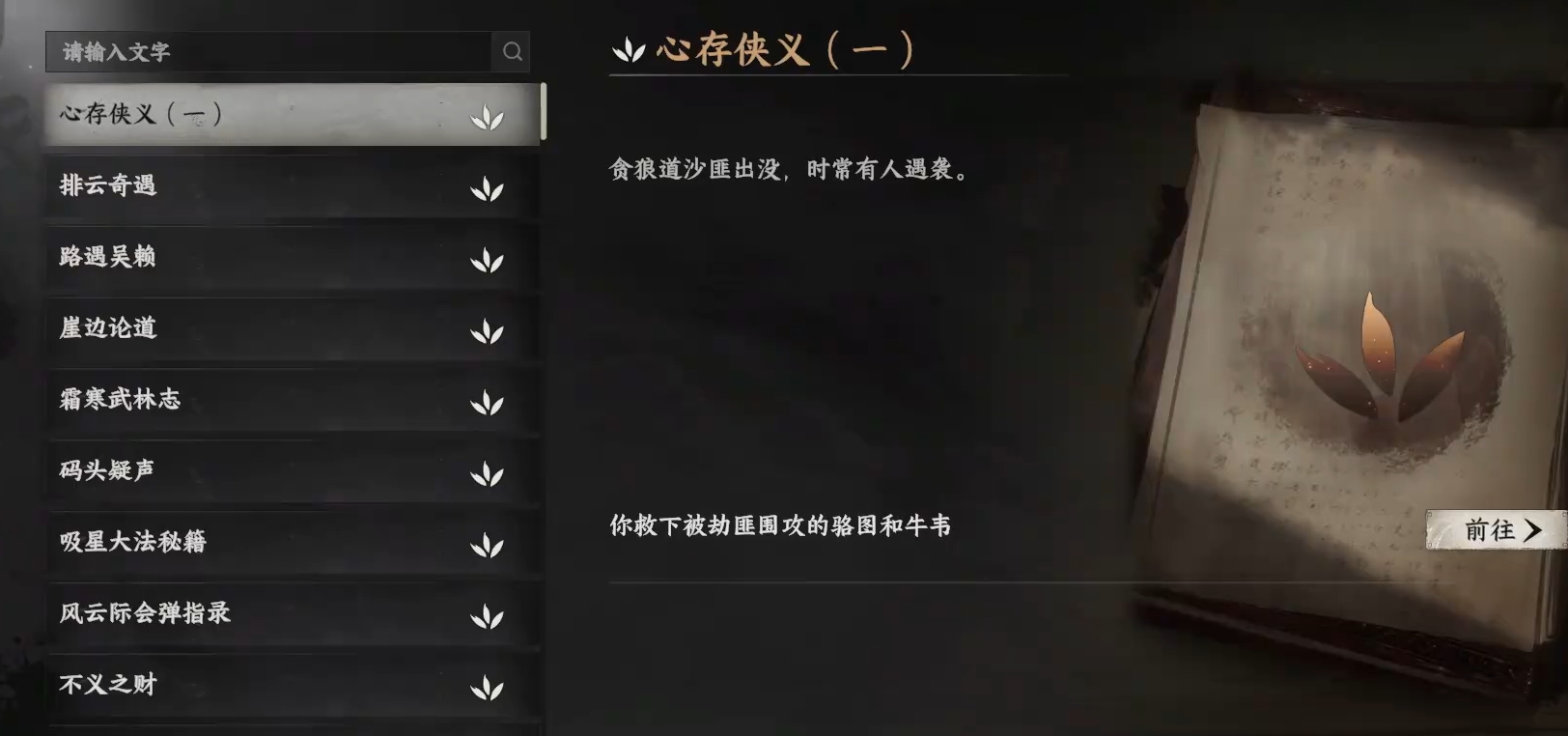 目前,下一站江湖2的主线任务可使用自动寻路来快速找到目的地,而其它任务则只有部分可用该功能,但各位在接取时,NPC会把关键线索标准成黄色,人们只要按这个特性去找到对应的NPC或来到指定的地点,就能继续去推进任务。若是部分地点自己忘记在哪了,或是有些NPC不知道怎么才能找到,可通过地图来进行搜寻,然后再将其定位目标点位,各位就能在操控角色时看到点位距离提醒,跟着提醒走就能快速来到自己想前往的区域。此外,部分任务需阅读书信或收集到的信件道具才能触发,建议各位有新信件或新道具时先去阅读一遍,避免漏掉任务。