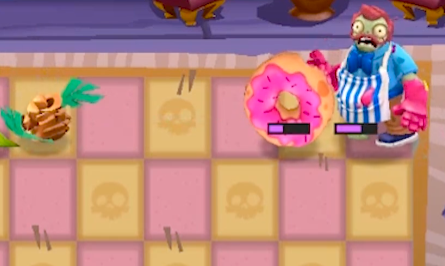 甜甜圈推手僵尸堪称中后期的大敌,本体285点血量加之700点的血牛级甜甜圈附件,配合150+1000的双重伤害数值,还算是比较高的数值,应对这对组合的最佳方案是分离战术,先用窝瓜单独击飞甜甜圈,再用玉米加农炮轰击落单的本体。