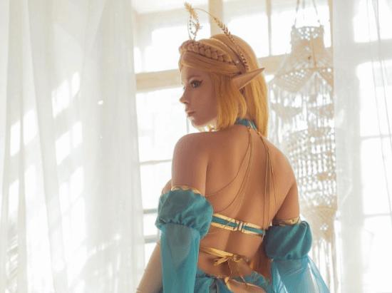 俄妹COS《塞尔达》公主 泳装胸衣肉感身材