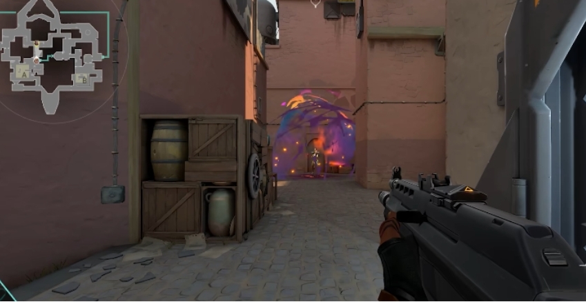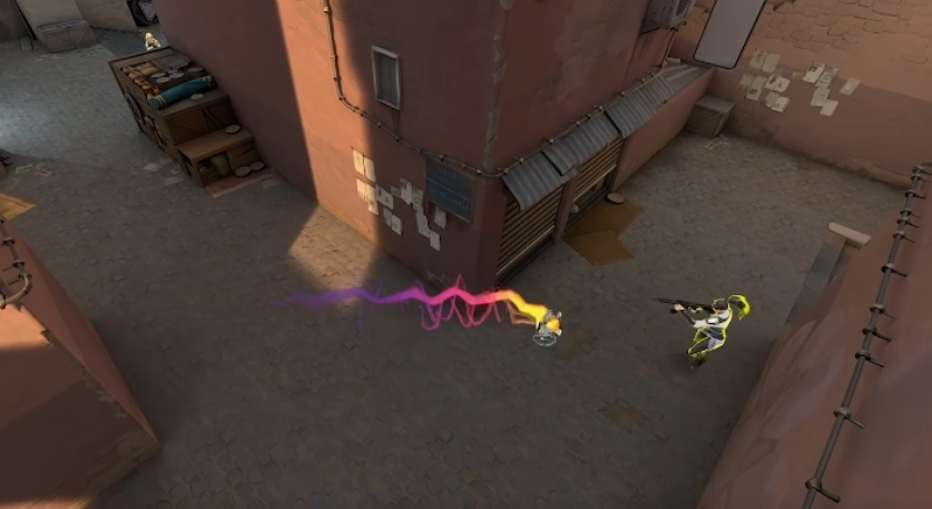 雷兹的核心技能花车巡游展现了她对机械装置的掌控能力,当激活该技能时,她会召唤出一个小巧的爆弹机器人,按下射击键后,机器人将沿直线快速行进,遇到障碍物时会自动弹射转向,这种智能寻路机制使其能在复杂地形中灵活穿梭,且其自动锁定功能是一旦进入锥形探测范围,机器人会立即锁定目标并发起冲锋,接近敌人后轰然爆炸,造成可观的范围伤害,这一技能的战略价值远超表面伤害数值,而且可作为远程探草工具,若机器人突然爆炸,即刻暴露埋伏之敌的位置,或者在防守回合可将机器人部署在撤退路径,利用爆炸延缓敌人追击节奏,也可以,配合队友的控制技能,可将敌人驱赶至预设的爆炸区域,例如在守包点时,将机器人藏在转角后方,待敌人经过时触发效果是很好的。