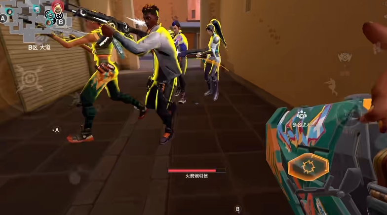 作为终极技能的晚安焰火技能,赋予雷兹区域轰炸能力,火箭发射器的巨大威力足以改变战场格局,不仅能对扎堆的敌人造成打击,还能有效清除敌方布置的防御道具,然而强大的破坏力也意味着更高的操作要求,大家操作发射前必须精确计算弹道轨迹,考虑到火箭飞行时间和爆炸延迟,预判敌人的走位至关重要,在对中,可用火箭齐射清空包点周围的掩体,而在防守时,预先瞄准敌人惯常的进攻路线,值得一提的是火箭爆炸的冲击波还能震落高处的敌人,这种立体打击能力在多层结构的地图中效果是最好的。