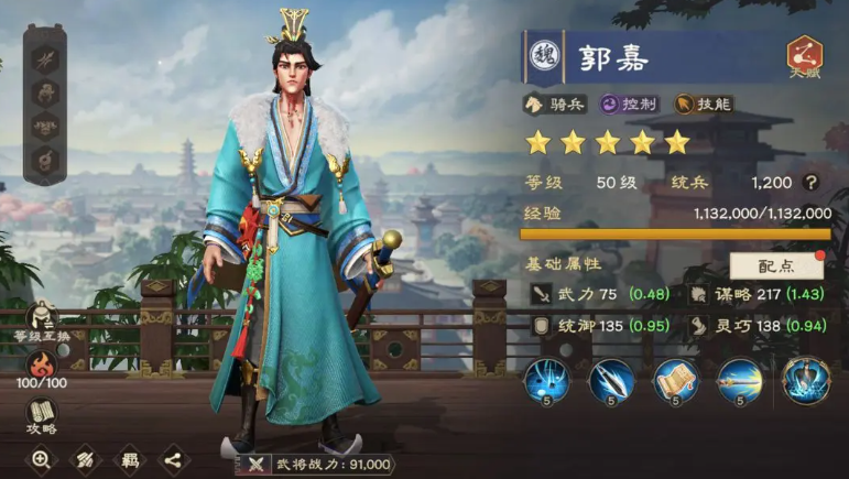 以智谋见长的郭嘉是谋略型武将的典范,其1.43的基础谋略值已属顶尖梯队,配合专属技能奇佐之谋形成的高频次范围打击,能在瞬间对敌方密集阵型造成冲击,该技能不仅覆盖范围广阔,更具备优异的伤害频率,尤其擅长针对特定区域实施加打击,值得注意的是,郭嘉的被动能力赋予团队双重增益,既提升全体成员的技能伤害,又能在普攻与技能释放时触发缴械、沉默等控制效果,这种集增伤与控制于一体的特性,使其稳居控制队与技能队的核心位置,然而,由于控制状态存在持续时间限制,实战中需搭配其他具备稳定控制能力的武将形成连锁反应,方能最大化控场收益,当郭嘉退居副将位时,其被动提供的巨额技能增幅很高,特别适合依赖主动技输出的速攻体系。