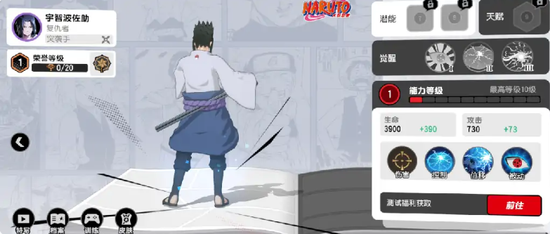 佐助则是策略型玩家的首选,其普攻根据距离智能切换草薙剑近战与手里剑远程的攻击模式,提升了适应不同战场环境的能力,小技能千鸟流释放圆形范围伤害,天赋解锁的眩晕效果可打断敌人关键动作,大招千鸟作为突刺技,觉醒后增加突进距离,配合沿墙滑行的天赋,可实现立体化的突袭战术,最独特的当属被动能量洞察,能够查看敌人的能量值,觉醒后甚至能识别技能范围,这一特性不仅提升了佐助自身的生存能力,更为团队提供了足够的情报支持,帮助队友预判敌方行动,佐助的能量洞察配合队友的控制技能,能形成致命的连携攻势。