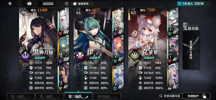 除了传统的侵蚀队外,还有一种更具侵略性的直伤队玩法,在这种阵容中,安普莎依然担任破甲重任,但她这次有了新的搭配角色,就是安洁和黑神月咏,安洁的作用在于持续为队伍恢复能量,保证输出角色始终有足够的资源进行攻击,而黑神则专注于爆发输出,利用安普莎创造的脆弱状态打出致命一击,为了最大化这套阵容的效果,还需要加入其他辅助角色,如耶塔、青蛙和雷雷,他们分别承担着不同的能量管理和控制任务。