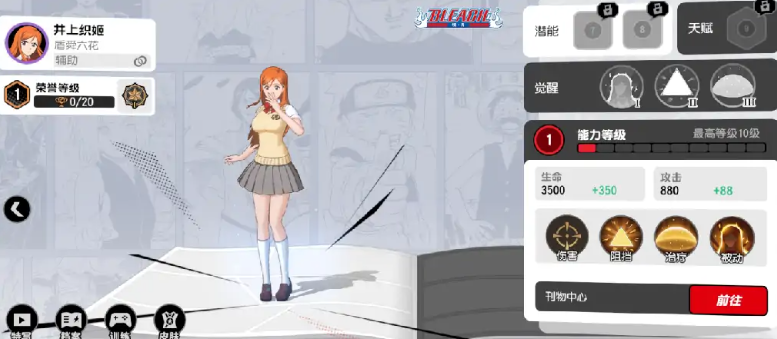 井上织姬她的普攻是可以操控椿鬼化身成橙黄色的飞行刃,对敌人造成伤害的同时,如果路径上有队友存在,还能为他们恢复生命值,她的被动技能专注于救死扶伤,当治疗生命值在40%以下的队友时,治疗效果会提升20%,这使得她在关键时刻能够挽救濒危的队友,她的三天结盾技能可以选择一个关键地点放出盾牌,这面盾牌能够抵御敌人的子弹长达5秒之久,而双天归盾技能更是强大,会选择一个范围制造出盾牌领域,处于其中的队友们每秒都能恢复生命。