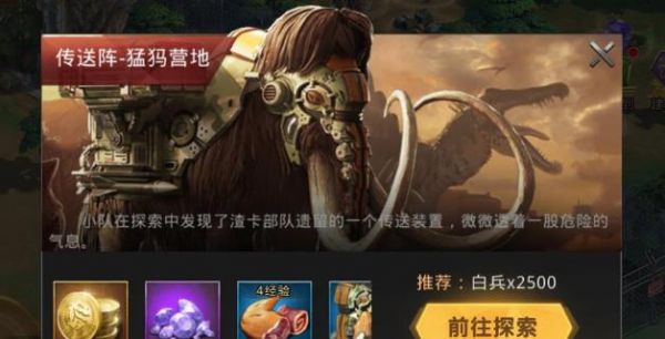 传送装置这个设定在指挥中心达到八级之后就会解锁的, 在解锁之后有几个方式是可以发现这个传送装置的。第一种就是通过探索来发现,探索发现的话有的区域汇总是固定有传送装置的, 有的是随机发现的。随机发现的是有一定几率遇到猛兽传送装置的,在这里面的奖励是比较高的。