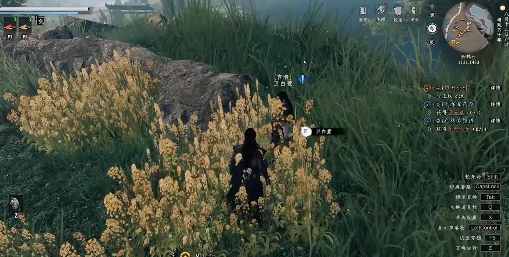 任务第一阶段需跟随谢长风完成三项试炼。第一项踏雪无痕要求在30秒内踩着枫晚林(坐标205,447)的七块浮石到达对岸,中途掉落需重新开始。第二项”追风逐月“需在未时前赶到落星滩(坐标887,1562)摘取崖壁上的星纹草,此处必须使用二段跳接冲刺轻功才能抵达。第三项”负重疾行“要背着谢长风给的50斤沙袋,从临安城南门跑到北门,期间不能使用轻功,且需在90秒内完成。