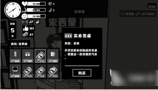 如果钱不够的话,小伙伴们只可以先去找点兼职做,赚点小钱。但是在兼职期间,大家还是需要注意自己的身体状况,在夜晚12点之前,各位小伙伴需要找到自己睡觉的地方,不然,可能会得感冒,这样会导致自己的健康值有所下降。