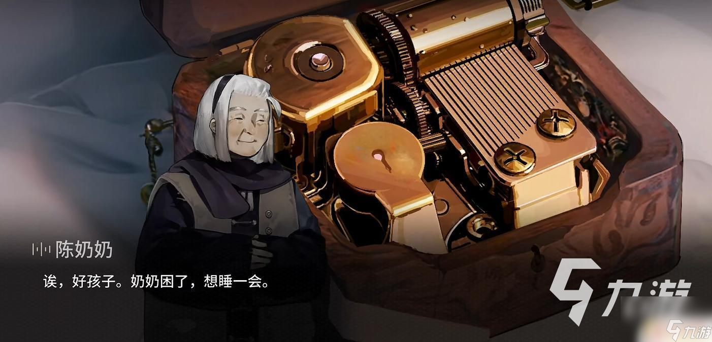 当我们将八音盒通过谱取修复完之后,了解到陈奶奶曾经在各地奔波的时候,收养了一个父母双亡的小男孩,两人相互生活。后危机爆发,为了帮助陈奶奶。小男孩不顾危险去另一个城市寻求办法,使得陈奶奶十分担心她的安危,希望主角能够将修好的八音盒带往那座城市,给那个男孩。