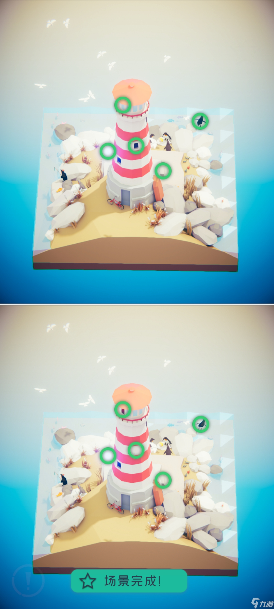 你点屏幕只有一次机会一次;不论对错会随机跳转到下一个场景;再点击再随机跳转。