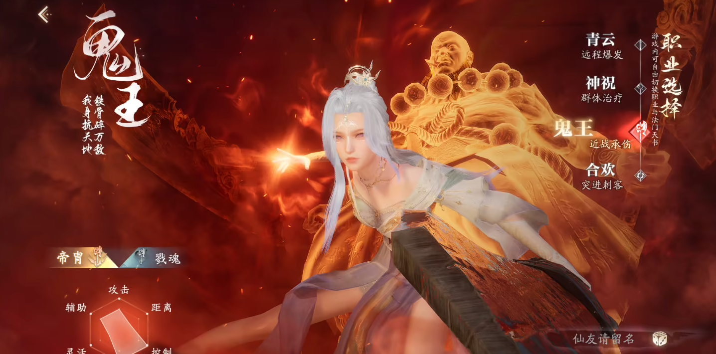攻守兼备的六边形战士,作为主T职业,在PVE副本中承担伤害吸收和仇恨控制,80%以上的高阶副本队伍都会配置鬼王。变身”明王“状态可免疫所有控制并改变重力场效果,限制范围内敌人的行动。前中期仅需基础装备即可发挥效用,后期虽需一定投入但相比输出职业要求仍低。同时鬼王拥有霸体、减伤和群体增伤BUFF等多项功能性技能,PVP中可黏住敌人进行持续打击。其核心变身技能持续期间可提高50%防御力和30%生命上限,是团队攻坚的保障。
