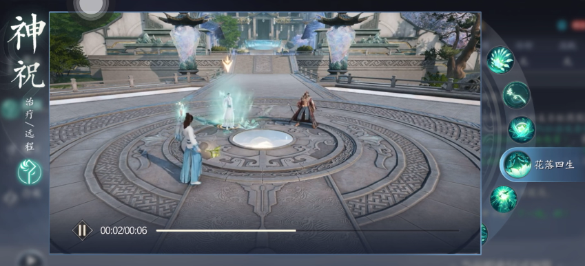 单体治疗技花落四生展现了神祝治疗的效果,基于自身仙法攻击倍率的气血回复量,确保治疗效果随装备成长而提升,其智能选定机制优先关照血量最低的队友,紧急时刻可直接拯救队友,进入山神状态后进化为芳尽春回,不仅基础治疗量大幅提升,更附加3秒持续治疗效果,相当于短时间内的双重提升效果,该技能的特殊之处还在于,若未指定目标,系统会自动识别团队中最虚弱单位,这种智能化设计提升了操作容错率。