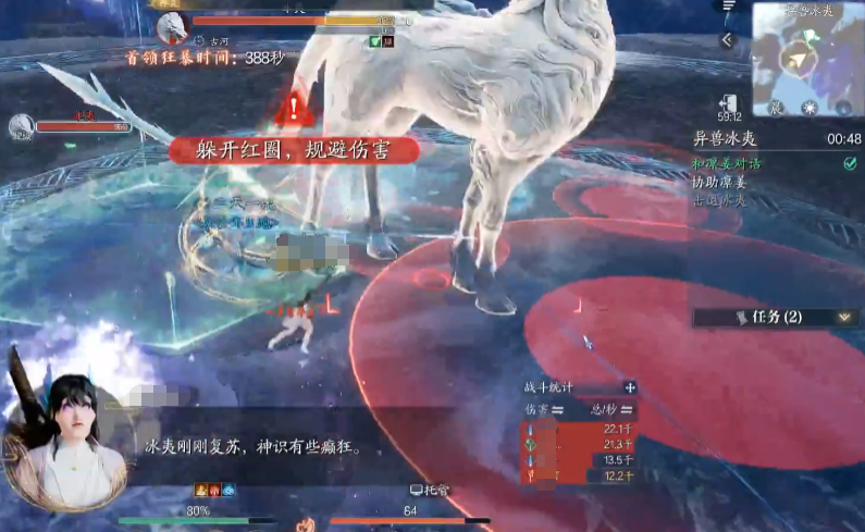 然后是冰夷,与冰夷的战斗是一场持久拉锯战,因为它清晰地划分为四个循序渐进且的阶段,每一阶段都在继承上一阶段技能的基础上,新增一到两个让人措手不及的新招式,战斗第一阶段便充满了变数,BOSS会按照固定周期召唤出大大小小的冰锥,先是巨大的主冰锥轰然落地,然后小巧却同样致命的副冰锥也会出来,玩家们必须迅速做出反应,避开这凌厉的攻击,当BOSS血量缓缓降至90%这一关键节点,它会猛然发力,将周围的玩家强行推开,与此同时,战斗正式迈入第二阶段。
