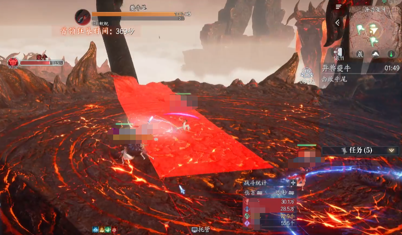 最后的夔牛,同样是一块难啃的硬骨头,它的战斗过程大致分为三个阶段,第一阶段开场,玩家们就要面对红圈激光,地面上不时亮起危险的红色光圈,同时伴有激光扫射,躲避不及就会遭受攻击,更麻烦的是,场上的某些石头会莫名掉血,而这些石头的生命值竟然与BOSS挂钩,当BOSS血量降至80%,天空中会出现陨石坠落,两颗陨石精准砸向预定位置,若能准确把握时机就可以让它们击中夔牛,就能使其陷入虚弱状态。