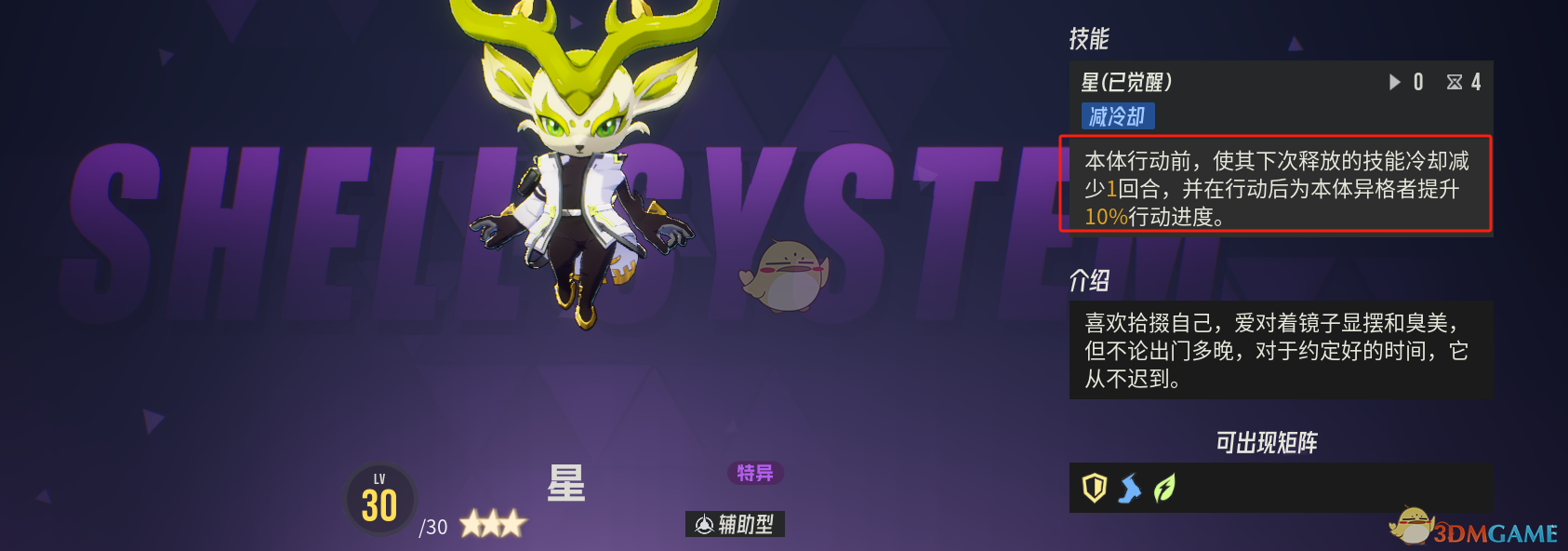 格雷,最适配的紫色智壳为,白疾风,延长格雷套的buff回合数,同时有概率凑出【疾驰】矩阵,提升速度