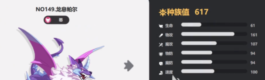 龙息帕尔始于恶魔系得精灵类型,这类精灵是由小帕尔进化而来得,它得种族值是比较高得,而且它得每一个战斗技能都有着十分强大得力量。