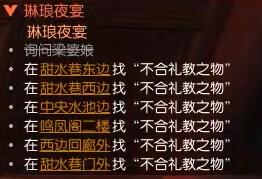 2、自动寻路去甜水巷对话【梁婆娘】,点任务栏去找【不合礼教之物】;