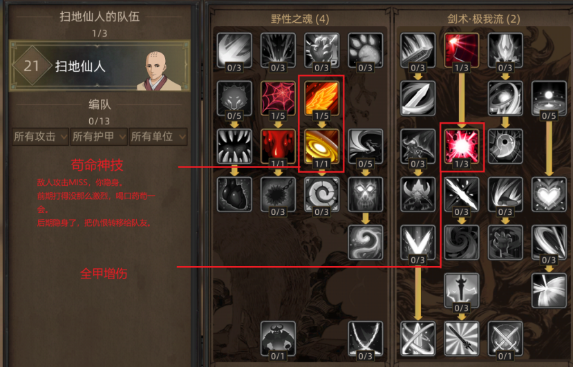 恭喜你,所有的主动技能基本学完啦。(生存容易暴毙的话,可以去秘籍商人那里买本硬气,物伤减免,能让你撑到转圈圈)
