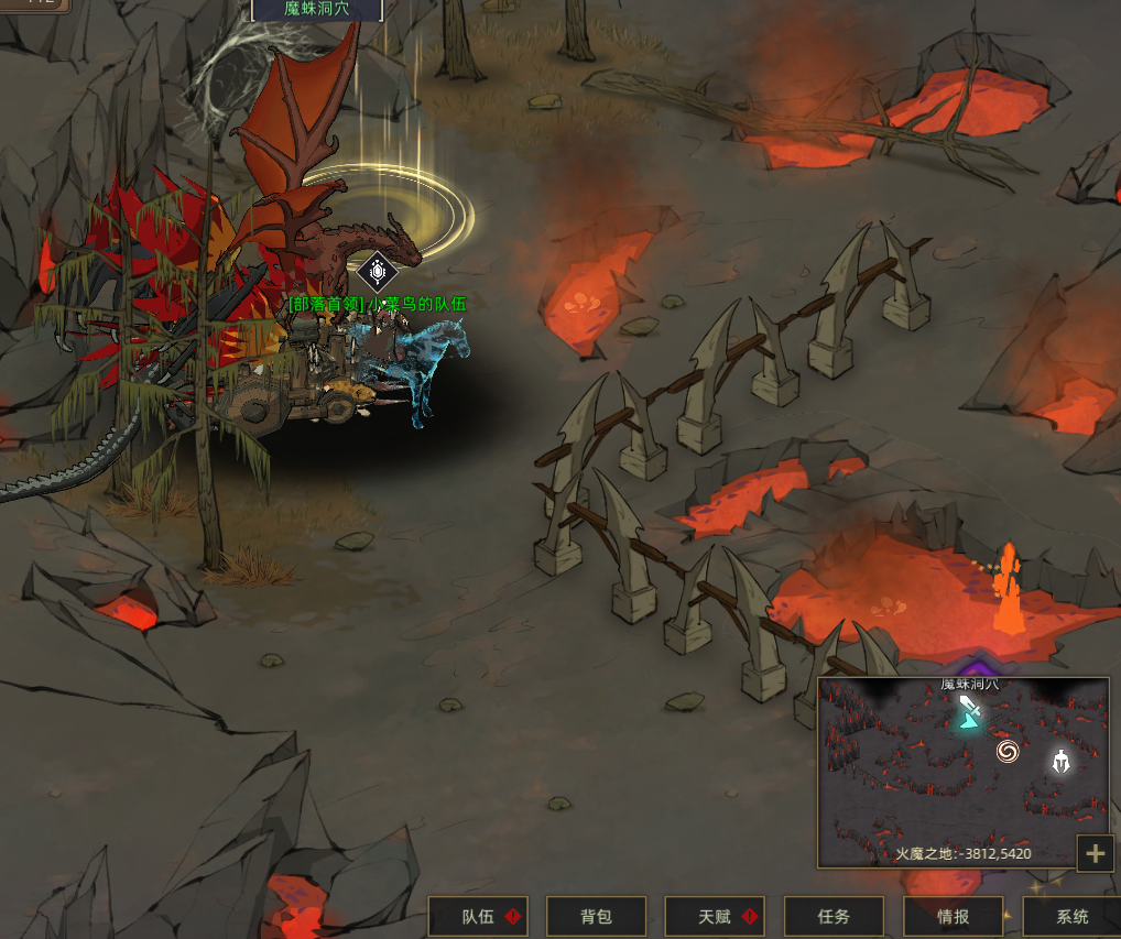 既然这件装备这么难获取,那我们不如退而求其次,选择巫术攻击为285的连环闪电巫杖,获取方法为火魔之地(-3812.5420)的魔蛛洞穴。