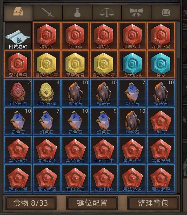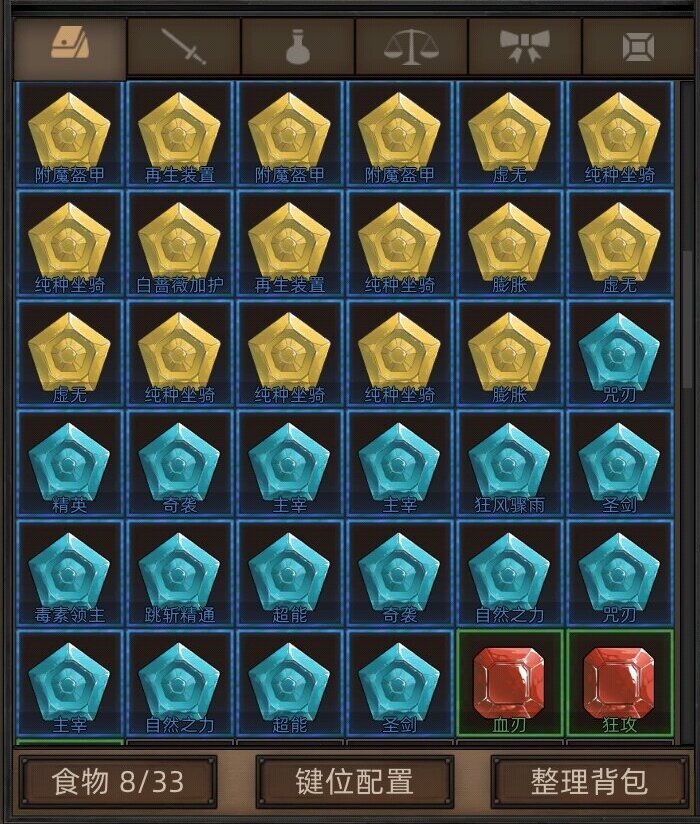 大量的中型魔晶、赠铸石记得存放到你经常到访的城镇 部落大厅仓库内方便储藏PS:不要放到敌对势力城镇 不然部落大厅都进不去 更别提仓库了 尽量放在自己领地内扩充背包工匠那里的也提供独立仓库。
