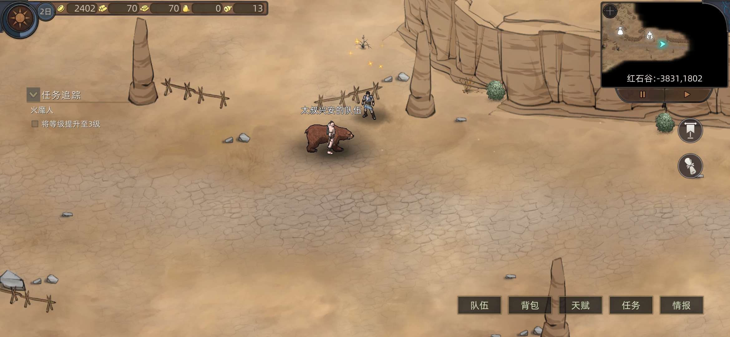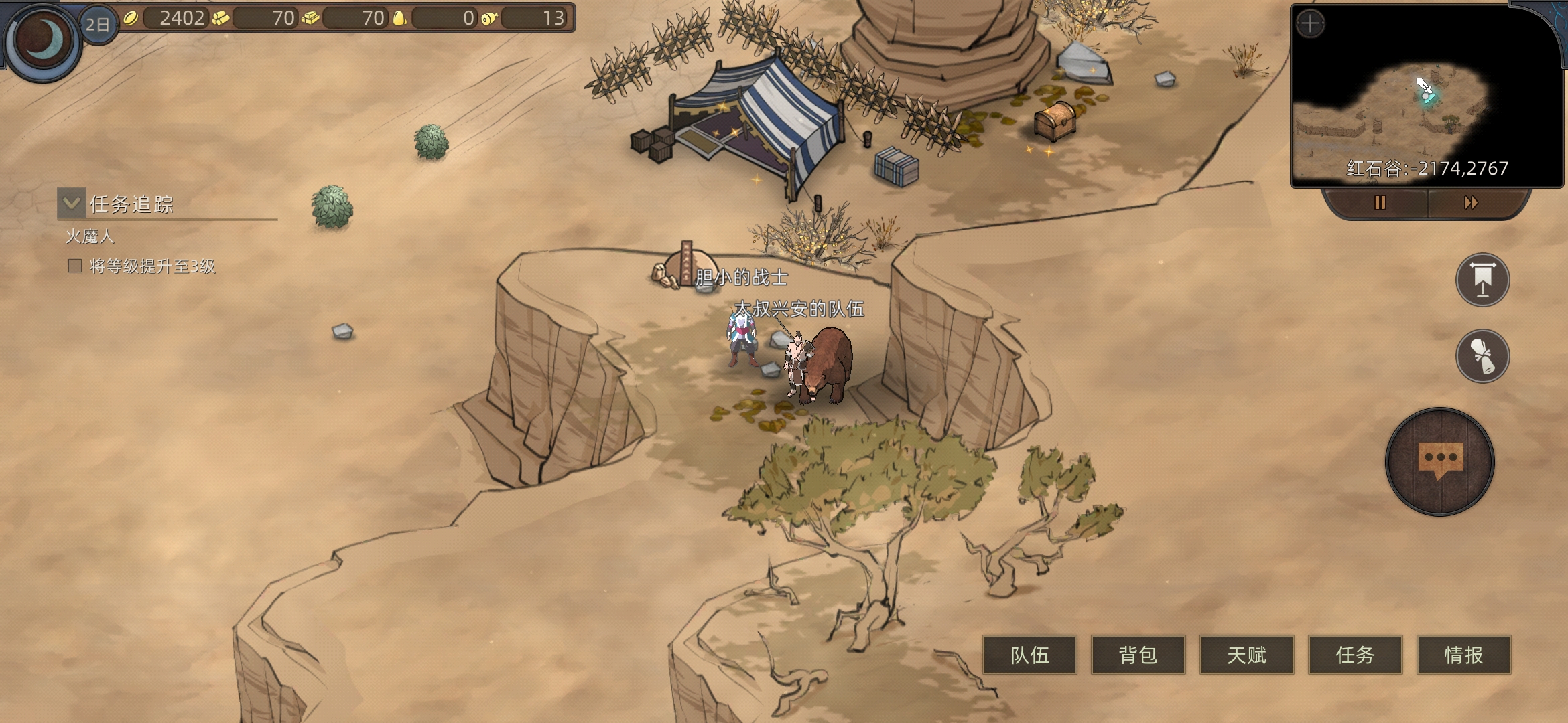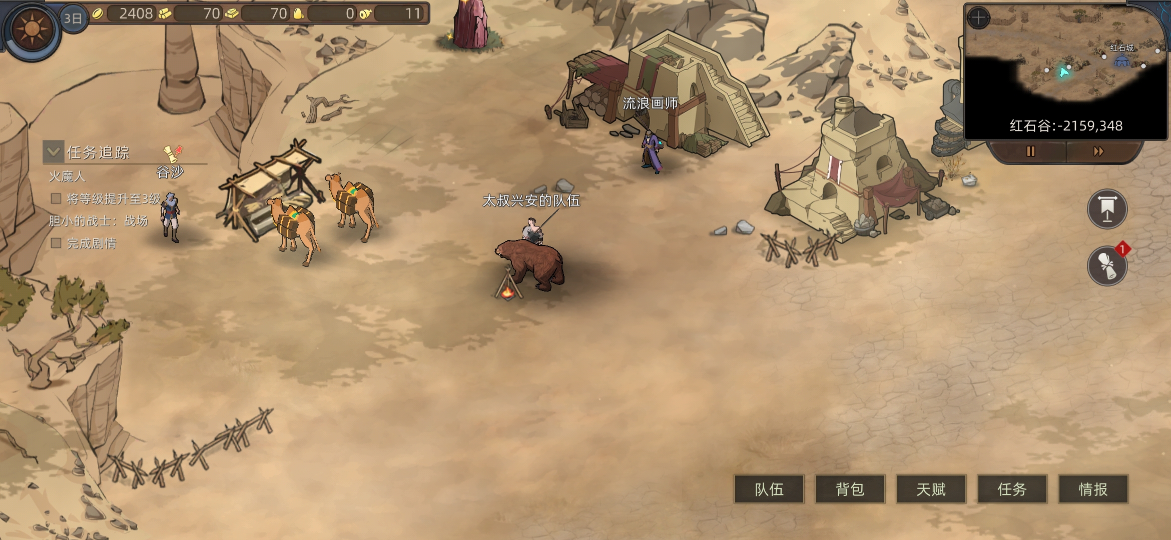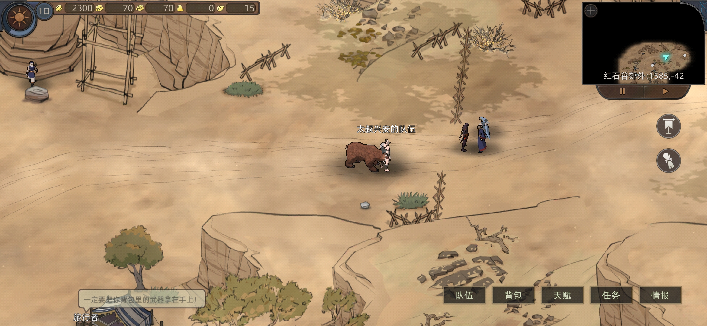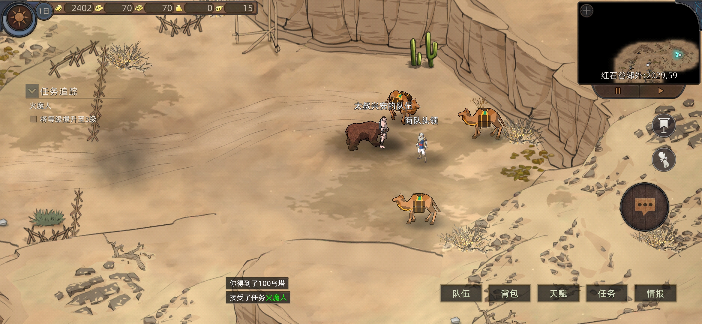 红石城左右两个任务,进入红石城,进下酒馆(有人之后可以在情报里看所在位置)