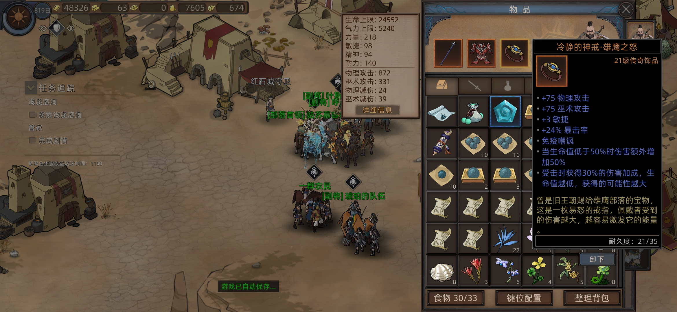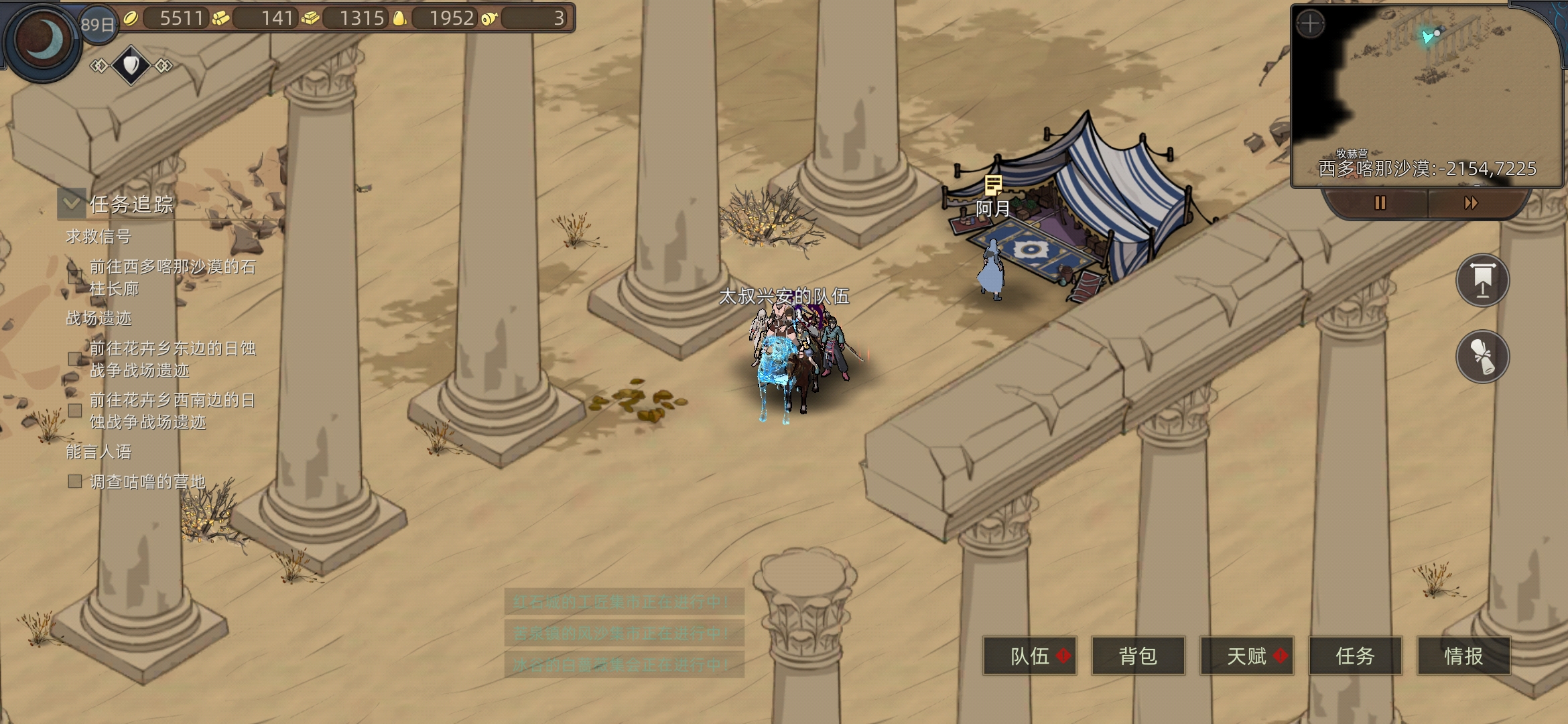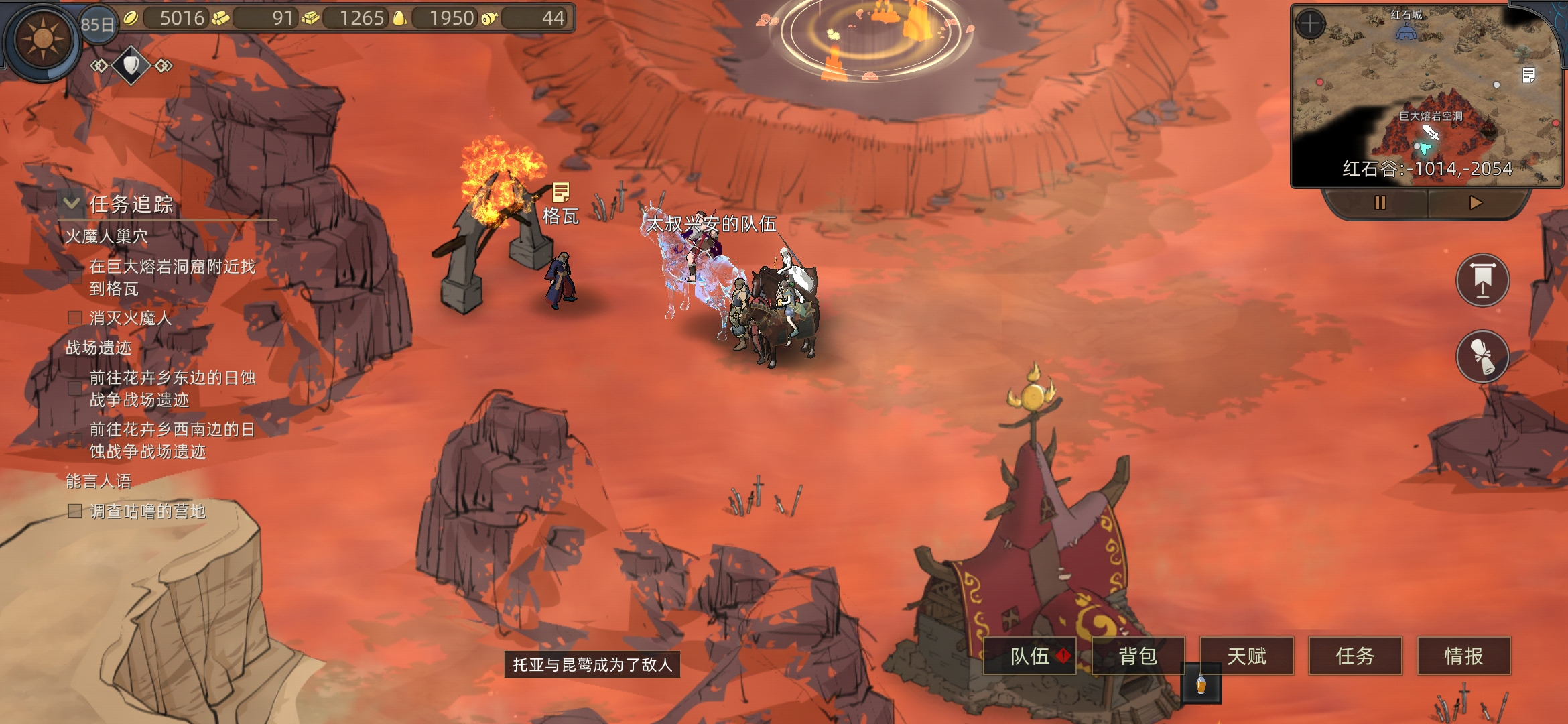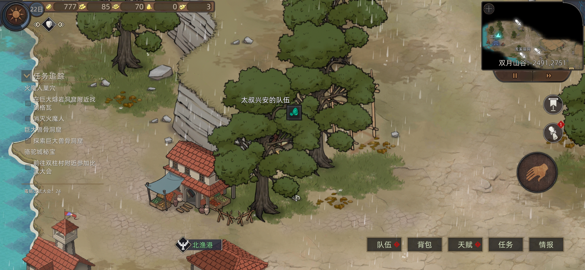 红石城左右两个任务,进入红石城,进下酒馆(有人之后可以在情报里看所在位置)