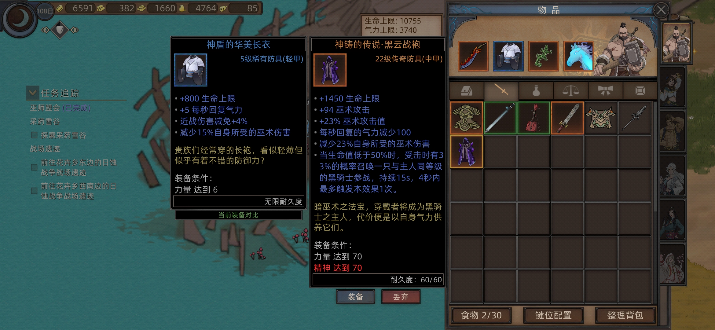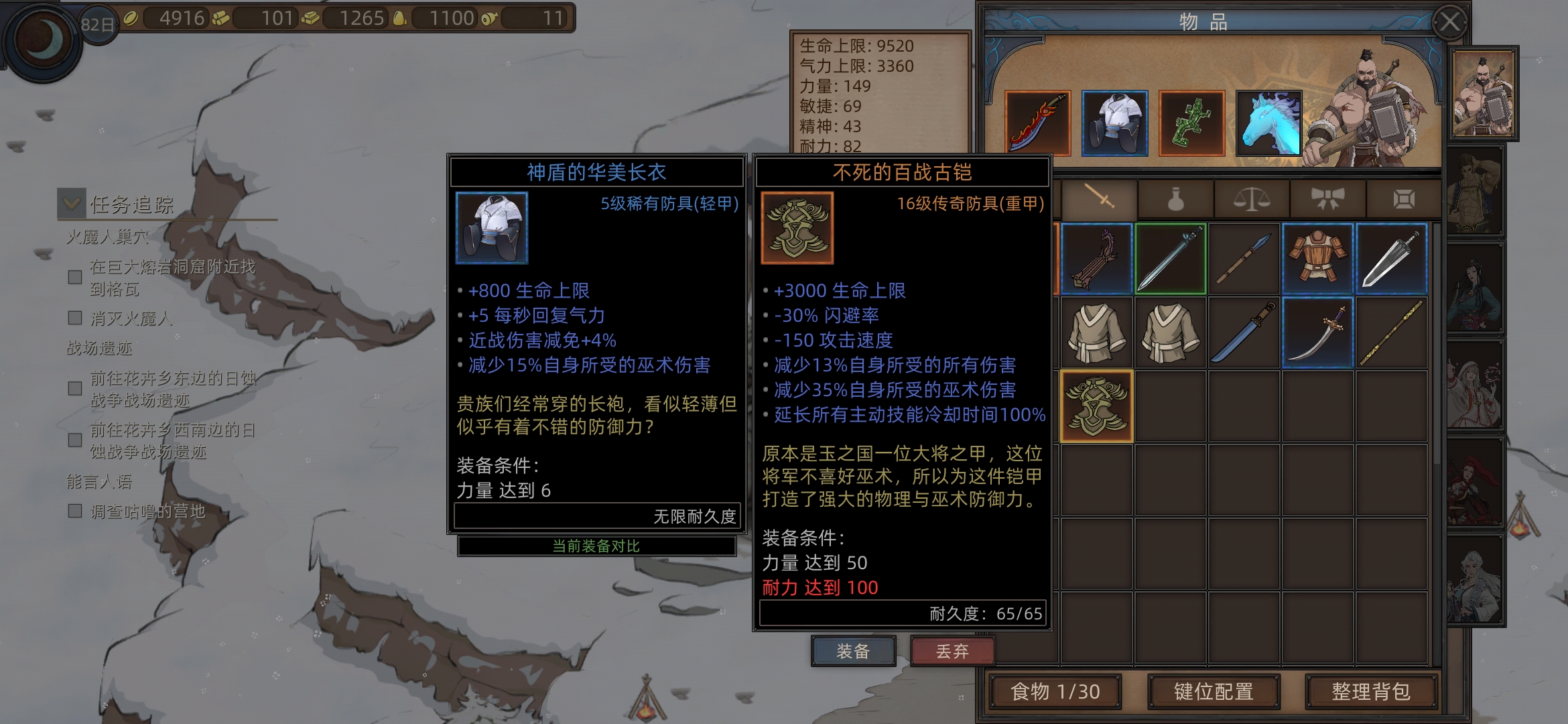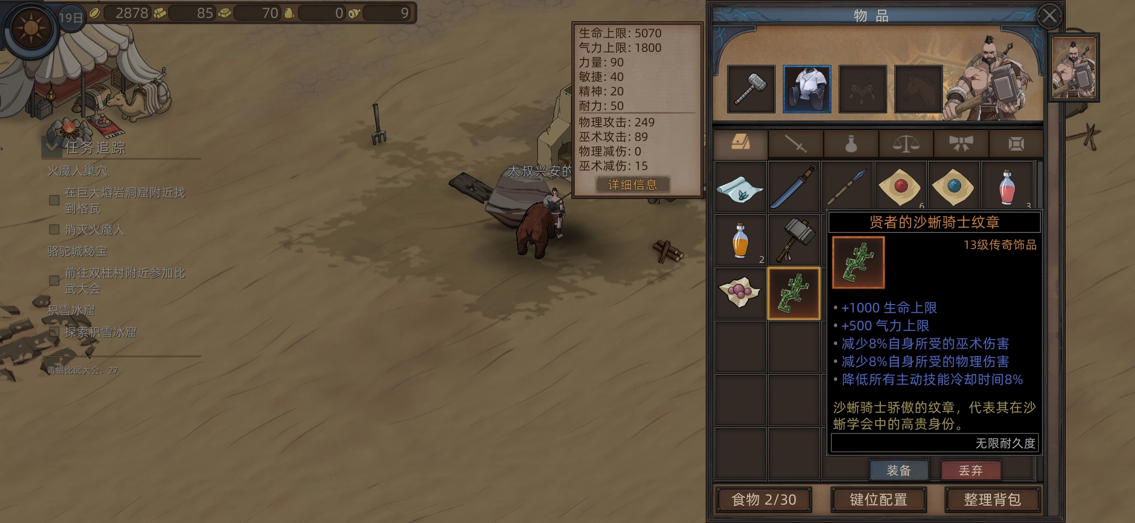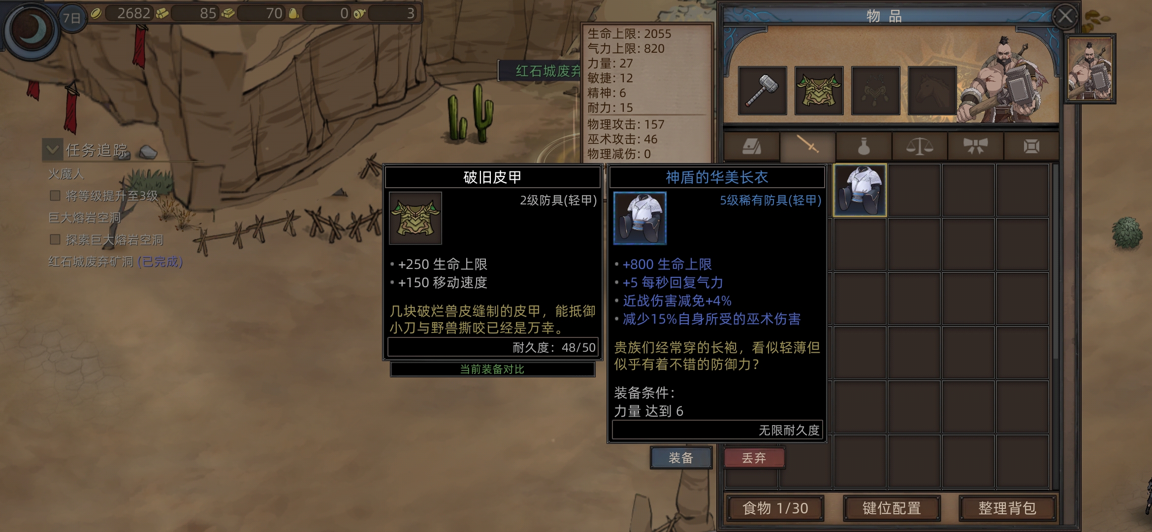 现在耐力不够穿不上,看下背包里有没有耐力秘药吃一下,还不够就等等(后面可以强化个神盾)