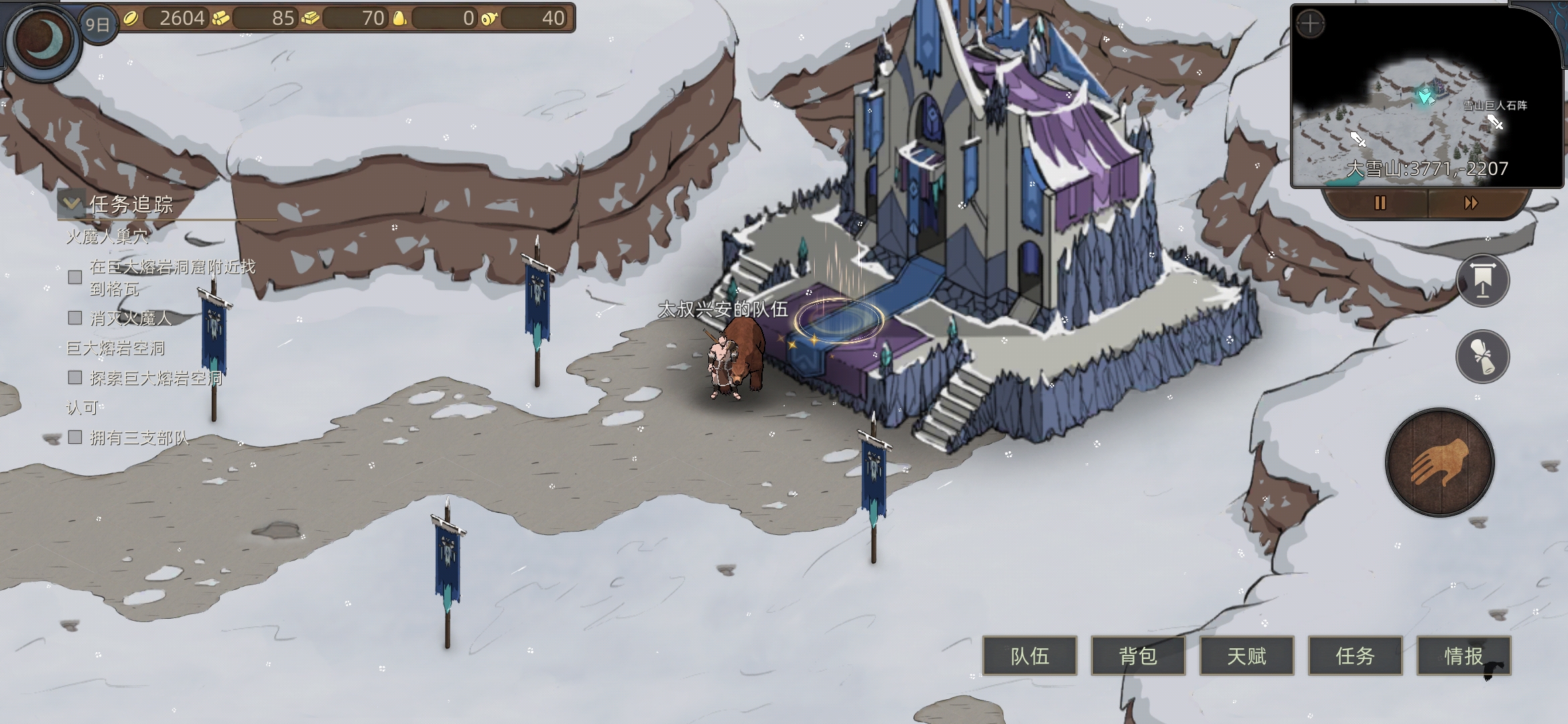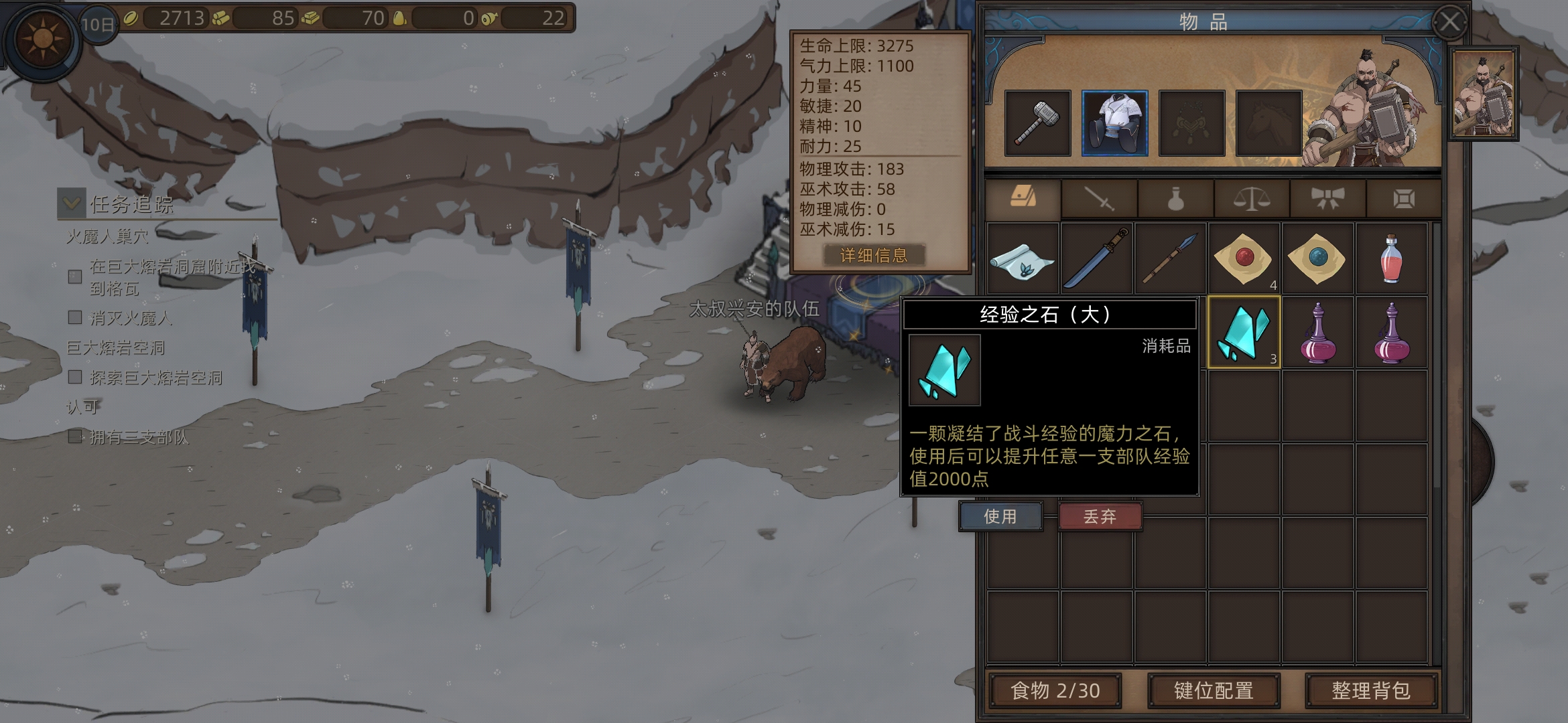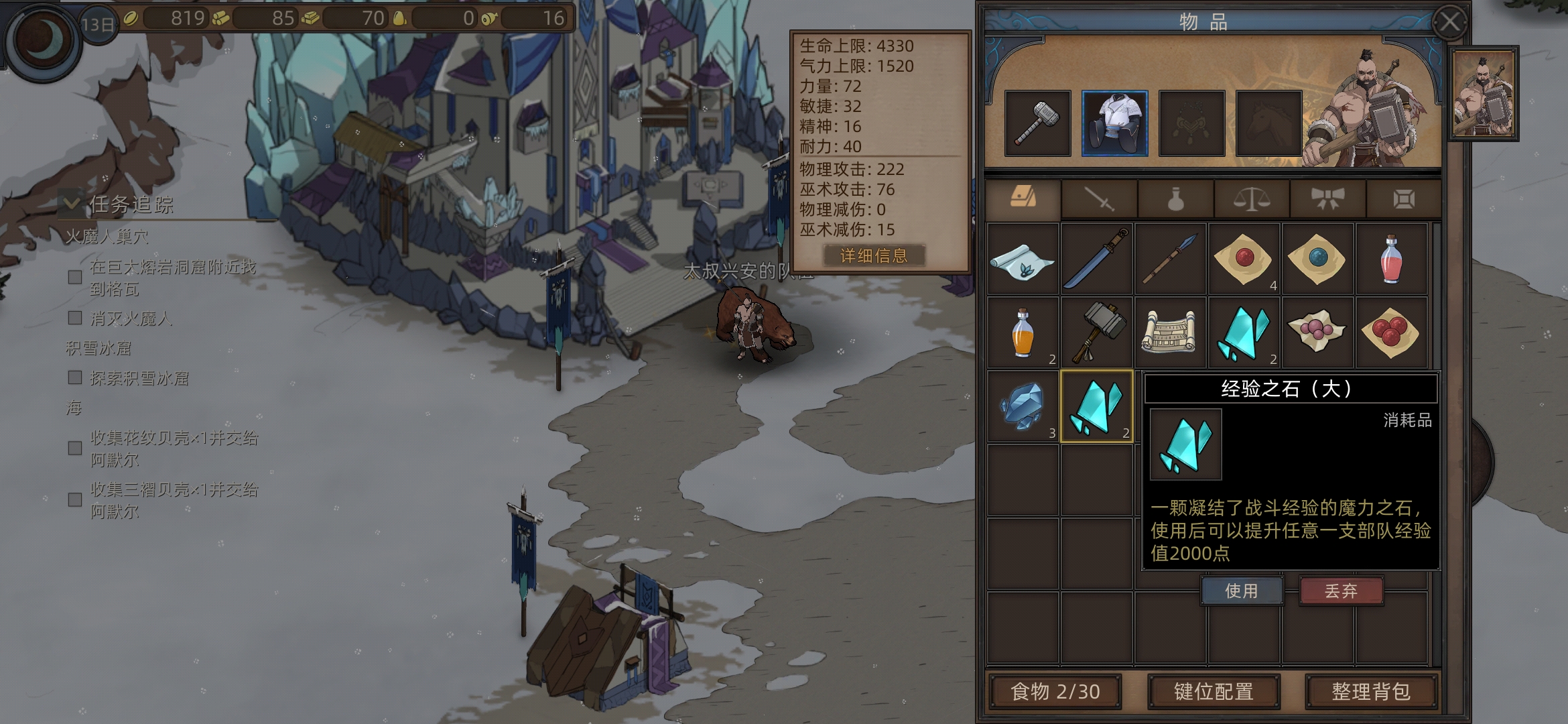 前往大雪山,打图书馆(可以存档刷一下耐力秘药),打完旁边有个雪山巨人石阵,存档,刷百战古铠