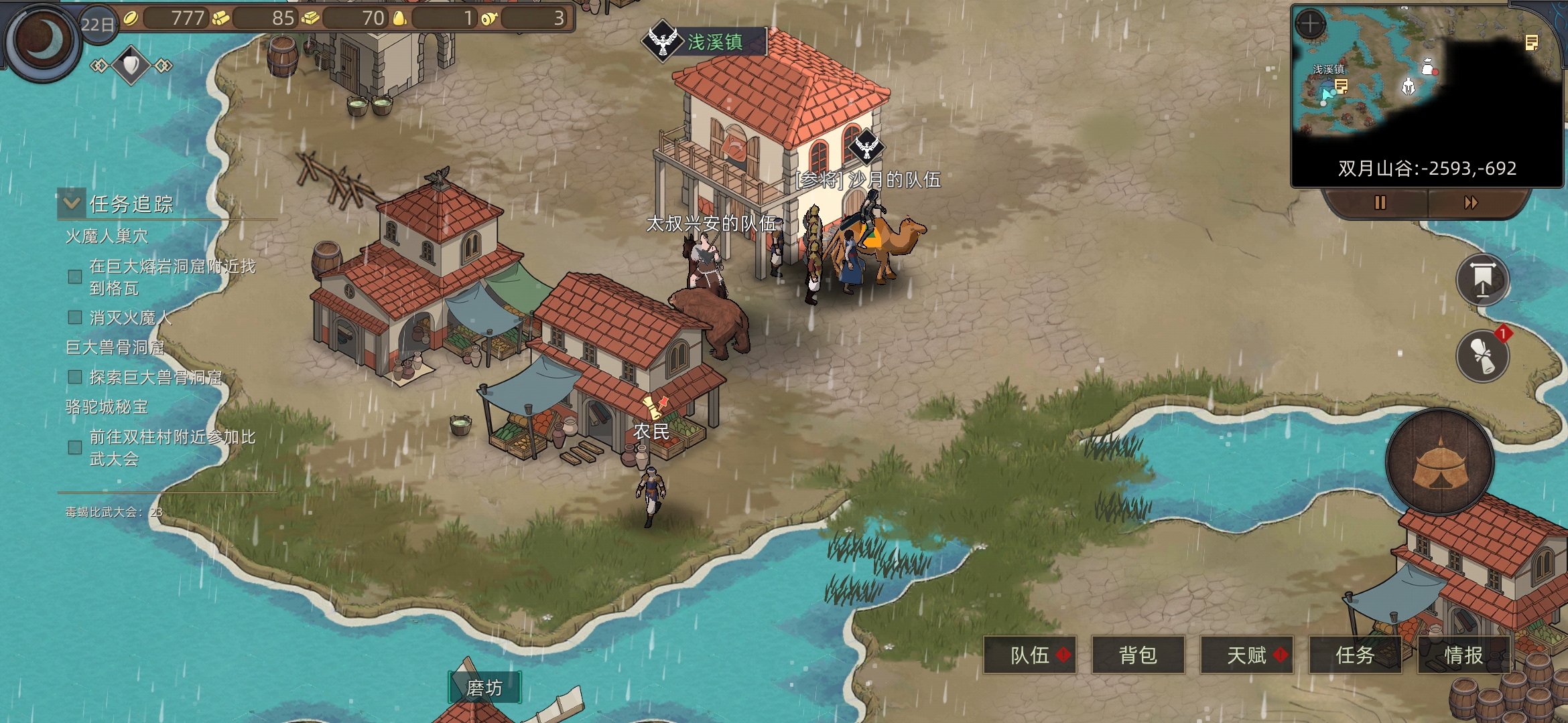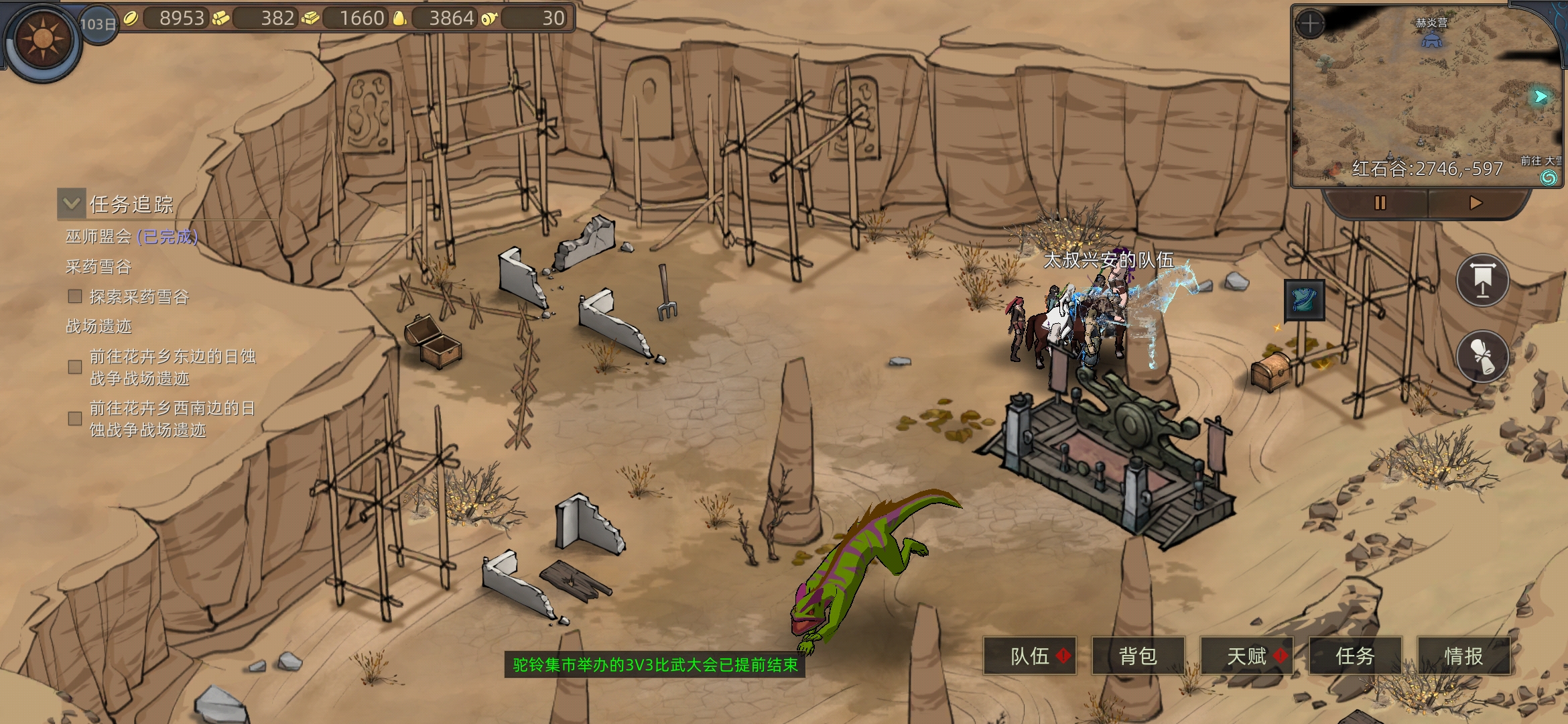 附近招三队兵(前面的任务),去红石谷也可以招