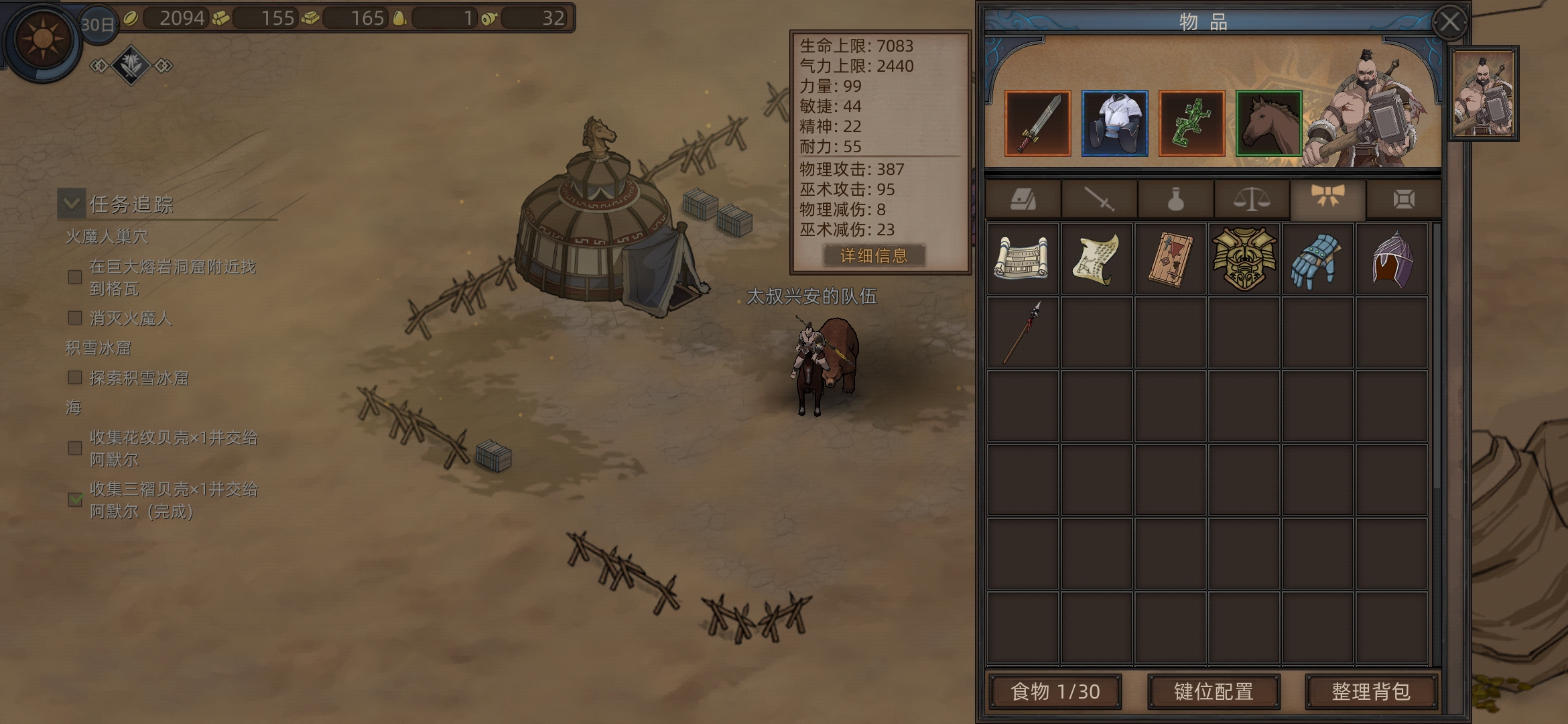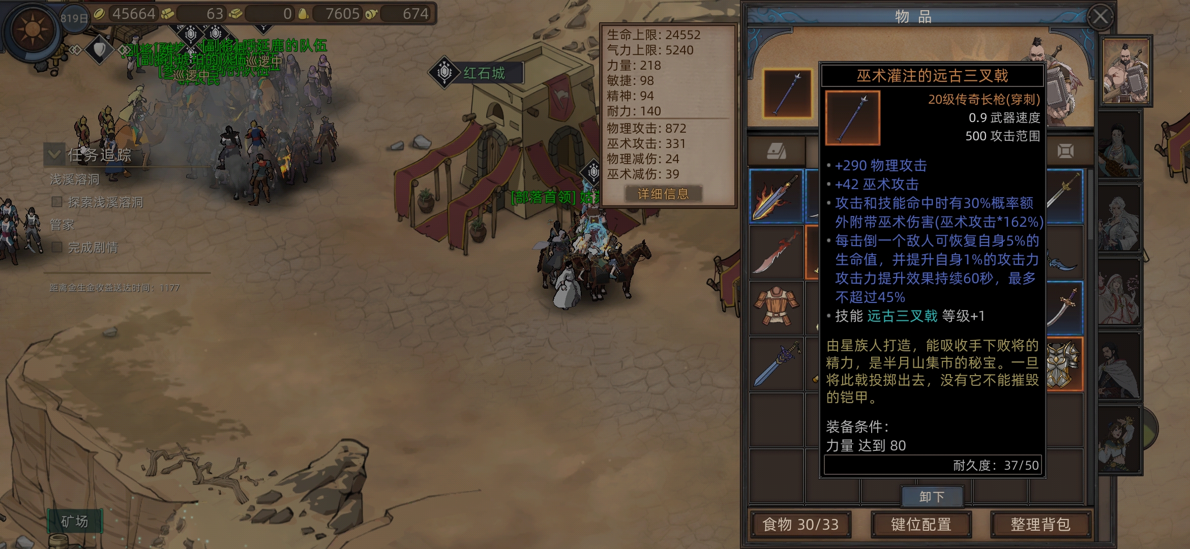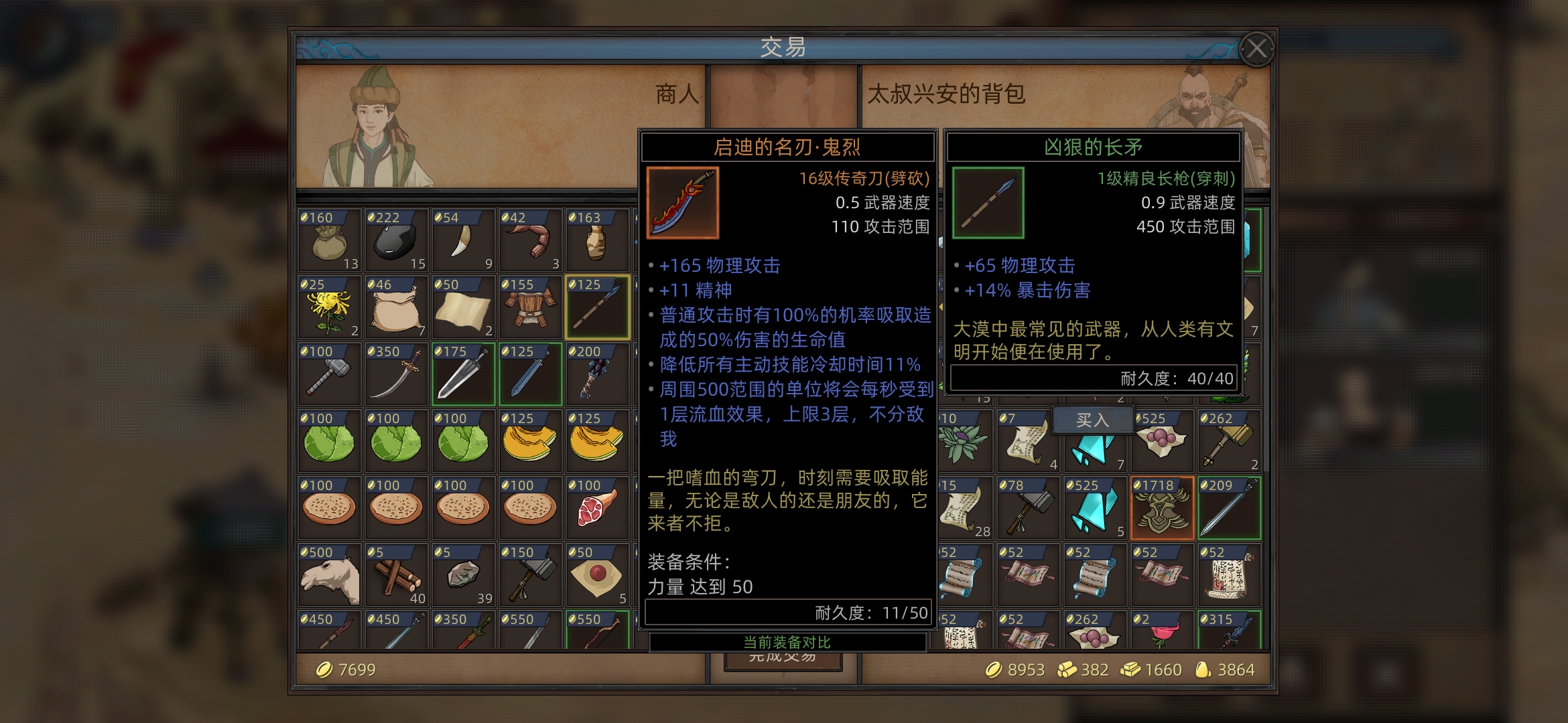 需要200食物,一个长矛,包里没有就买一下