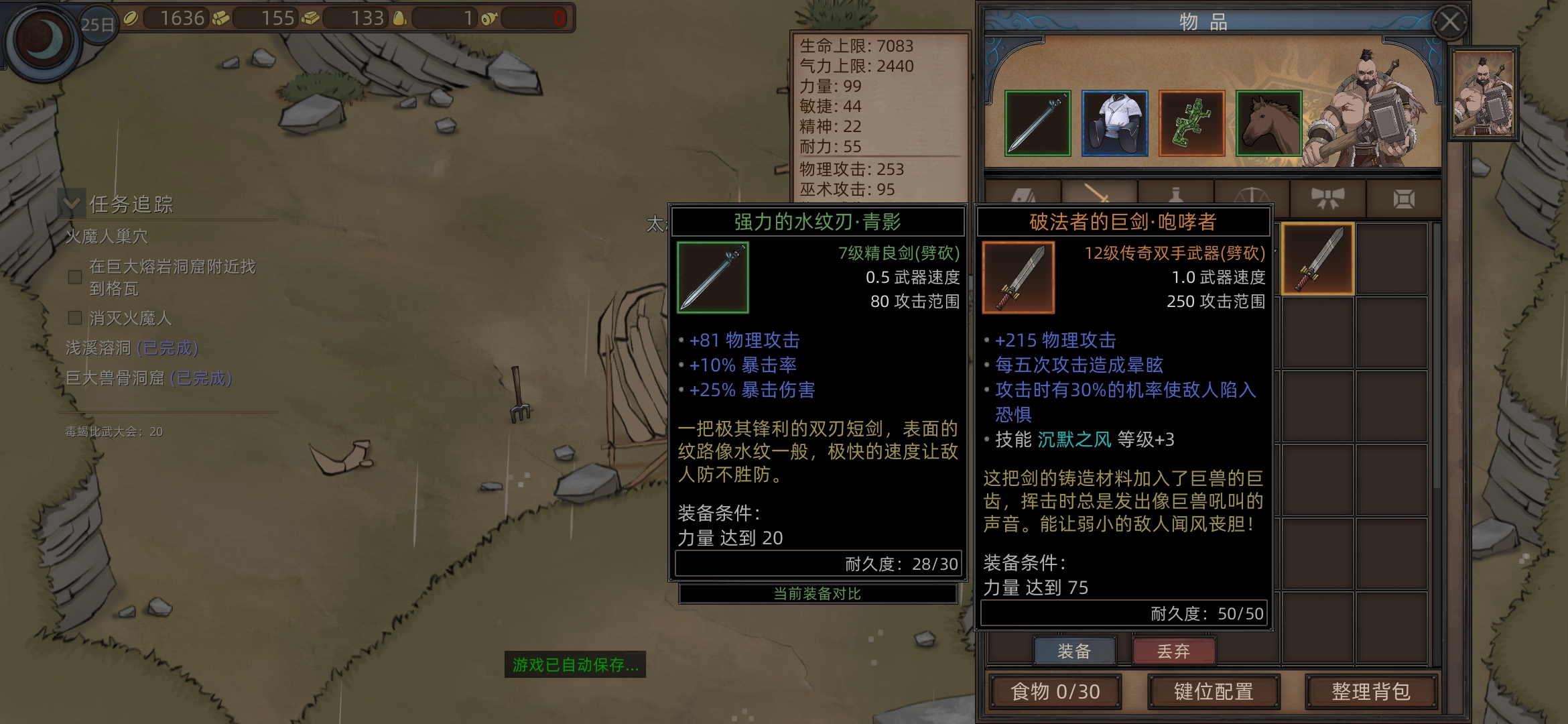 补:(这里也可以刷青影剑+青影甲,刷完两件后,兽骨洞窟可以不打,毕竟不太好打,可以先存个档,后面能过巨大熔岩空洞就行)