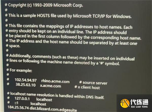 3、用记事本打开复制粘贴代码184.25.56.74 dist.blizzard.com.edgesuite保存。