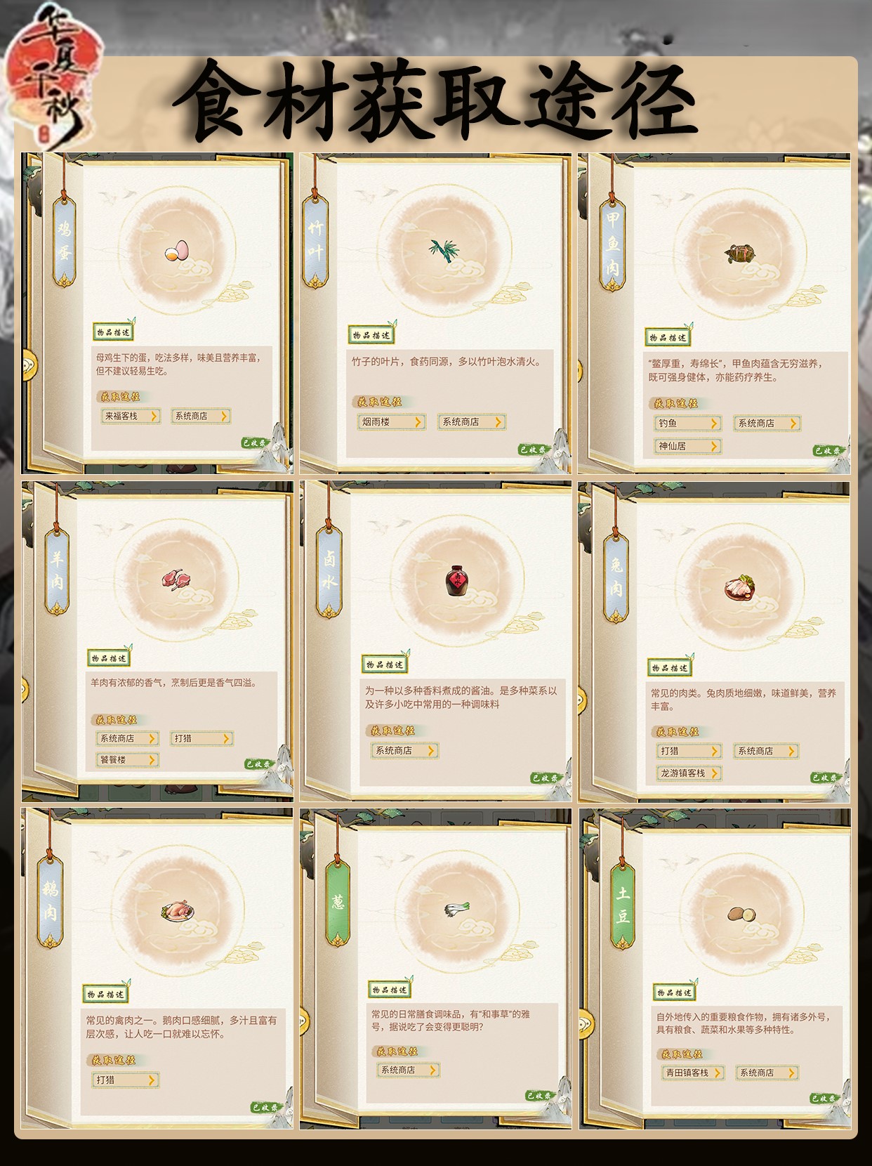 然而,江湖中若只靠自己,终究效率有限。此时,商人和市集便成为食材的重要补充。走进建邺或姑苏的街巷,推开客栈的大门,常能见到掌柜端坐柜台之后。点击“食材”选项,你会发现每日限购的珍品,或是菜谱中必不可少的调料。而建邺的有间客栈则藏有稀有的燕窝。每个城镇的特色菜肴背后,都是当地独特的食材产出。若你想集齐所有食谱,就需要不断在地图之间往来,把握限时的交易机会。