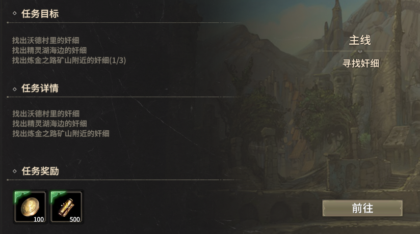 任务目标:击败分布在沃德村、精灵湖、炼金之路的3名可疑士兵。