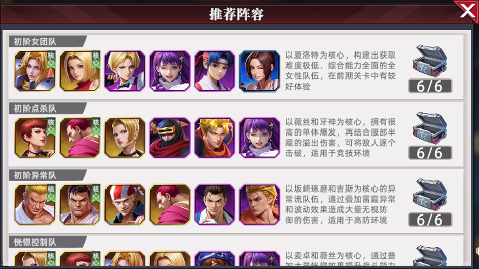 游戏中给玩家们一共推荐了十多种阵容搭配,在游戏初期,建议无脑选择 “初阶女团队”。这个队伍由获取难度低、升星速度快的英雄组成,而且英雄之间的羁绊能够全部激活,在前期的关卡战斗中,能展现出出色的战斗力,帮助玩家顺利通过前期关卡,积累资源。