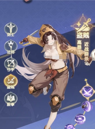 游戏中盗贼这个角色非常适合大家来进行搭配,那么还拥有瞬间爆发的能力以及高爆发率的额度,在作战过程中,可以把盗贼这个角色放在第一个,然后转职成为刺客,携带一些关于全刃的武器,更好的利用它暴击翻倍的一个特性,发挥最大效果的一个输出,那么还可以选择一个辅助类型的角色,拥有治疗的效果以及增益的效果,可以来进行全体治疗,帮助队伍驱散负面的一个状态,包括祝福技能也是可以来提升整体的一个暴击率。