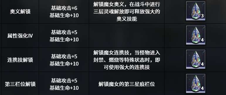 连携技的效果是一旦其他魔女成功地对敌人施加了灼烧效果,便会如同触发了某种神秘的共鸣机制一般,瞬间引发与安洁的联合攻击,此时的安洁可以迅速加入战斗序列,以凌厉的攻势对敌方单体再次造成99%的伤害,这样的配合不仅增加了战斗的观赏性,更在实战中极大地提高了输出效率,而当角色成长至15级时,安洁就解锁了她的奥义技,真理之章,使用的时候她会双手合十,本源的力量如洪流般喷涌而出,席卷所有敌人,造成高达210%的恐怖伤害。