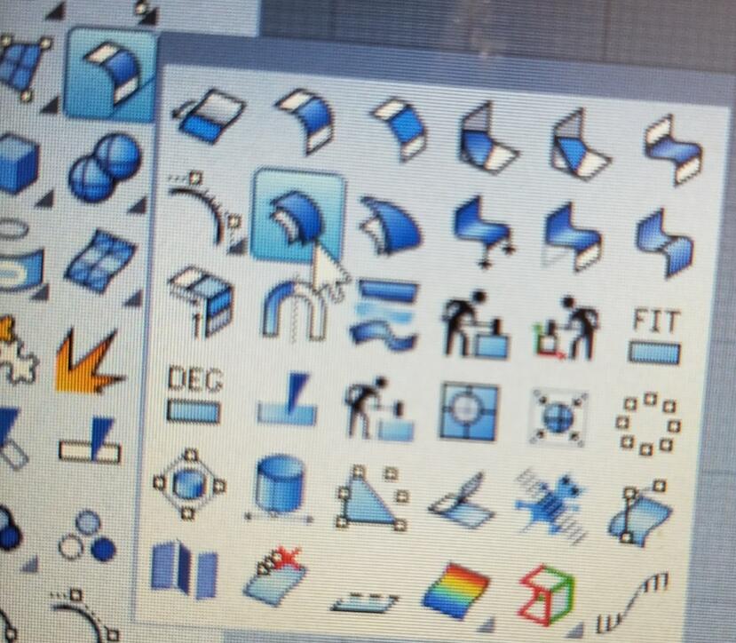 在标准工具栏下面找到下图中小编用箭头指引的曲面圆角的图标,左键单击这个图标。