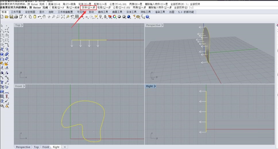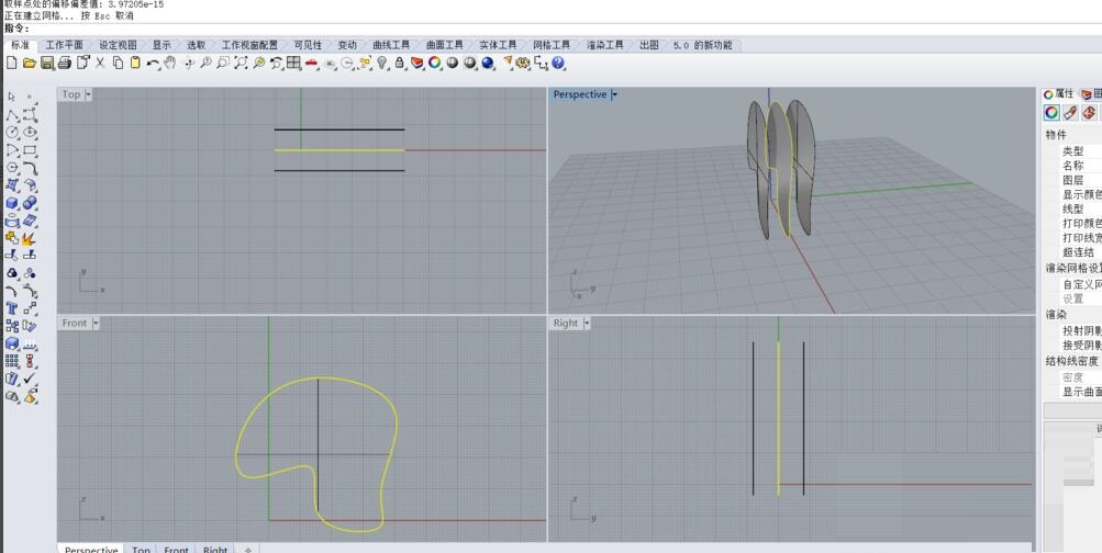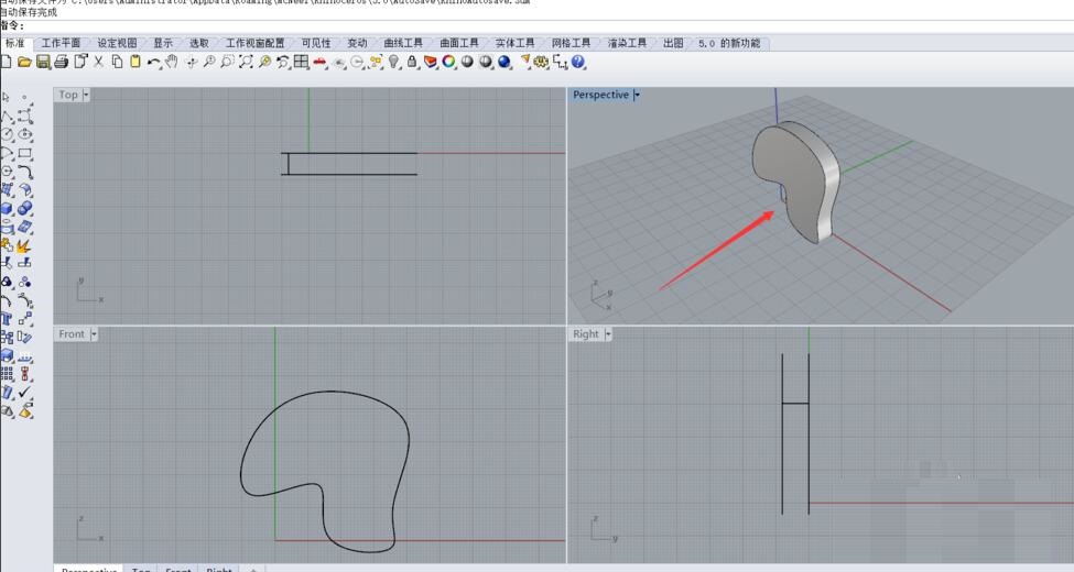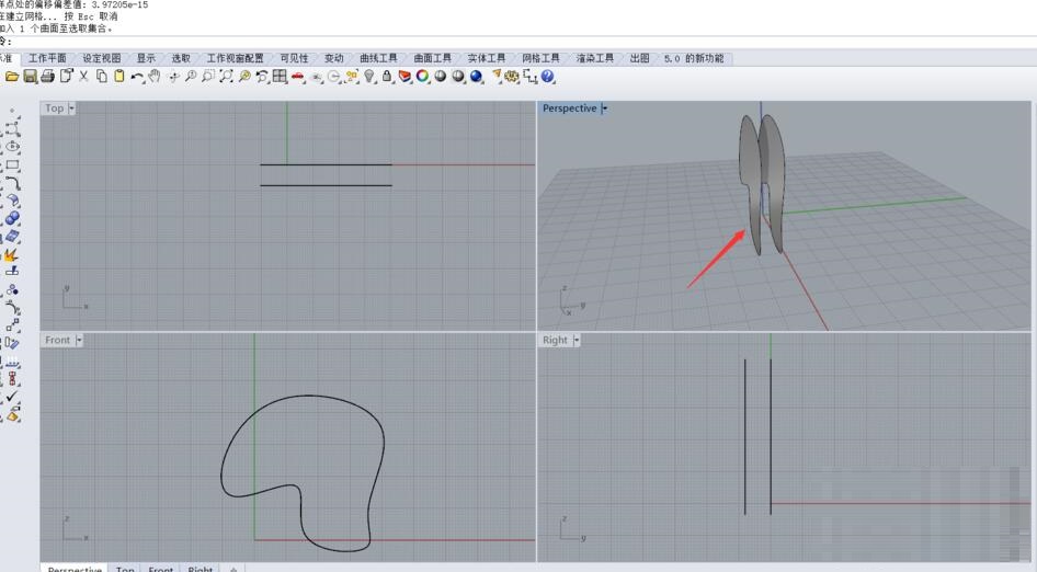 在rhino的前视图中,任意建立一个曲面,如图所示。