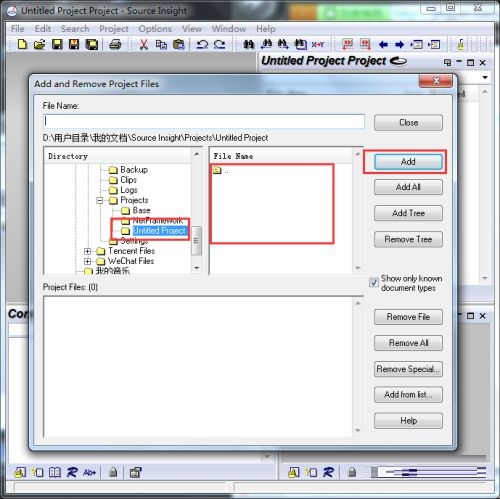 添加完成后,点击“Close”,此时就可以看到Source Insight工程已建好了。