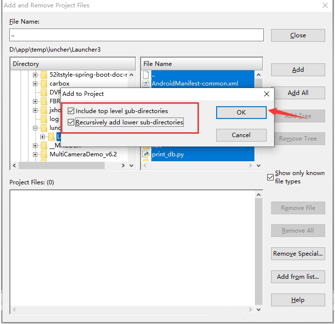 Recursively add lower sub-directories:深层递归添加所有子目录文件。