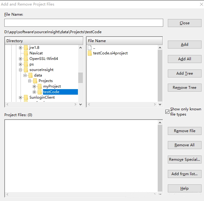 4、确认后点击 Close,工程自动加载所选源码,提示:Add All 会弹出上述选项,而 Add Tree 则默认直接递归添加全部文件,无需二次确认。