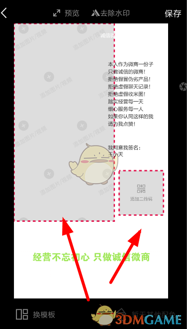 3、在这之后,按照所需上传自己手机本地的图片素材,添加相应的二维码图片,点击右上角“保存”按钮就可以完成编辑了!