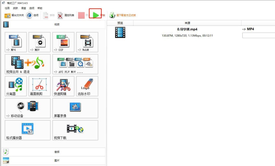 先用这个格式工厂,处理一遍视频,直接导入然后导出即可