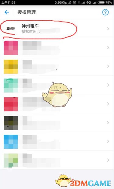 5、关于芝麻信用解除授权,切换到支付宝的芝麻信用授权管理页面,解除神州租车的授权就可以了,如下图所示