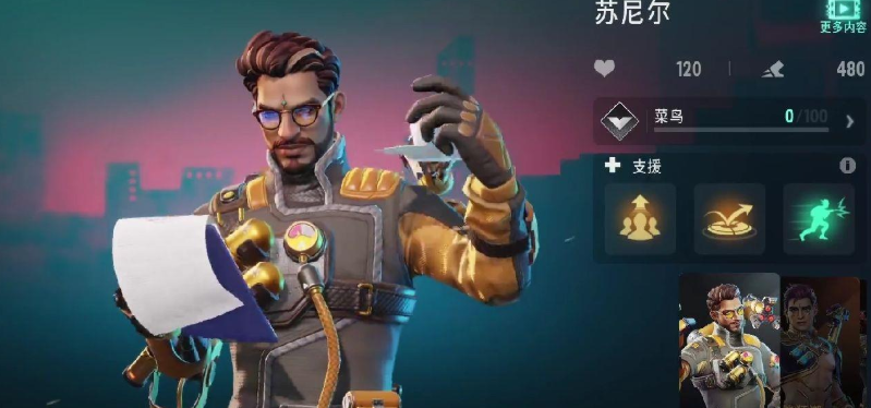 首先要提到的是苏尼尔,他定位为战斗辅助型英雄,每一次精准的射击,都不仅仅是简单的攻击动作,而是可以触发一种奇妙的增益效果,自身的移动速度会得到提升,这一特性使得苏尼尔能够更快地奔赴战场前线,无论是在躲避敌方的子弹时,还是在穿梭于复杂多变的建筑物之间进行战术转移时,他都能做到游刃有余,他的小技能能够在场地中布置好一个实用的跳板,当队友们踏上这个跳板之时,瞬间获得加速效果以及一大段惊人的跳跃距离,这一设计极大地提升了整个团队的行动灵活度,而他的大招一旦释放,便会召唤出一个智能机器。这个神奇的机器拥有强大的净化能力,能够将所有敌人的负面效果一扫而空,同时还能赋予队友免疫其他负面效果的强大护盾。
