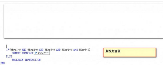 然后进入单步调试,进入单步调试后就像调试C#或vb.net代码一样,可以监控变量值,而且如果执行的过程中涉及到触发器,还会跳入到触发器里,执行触发器代码