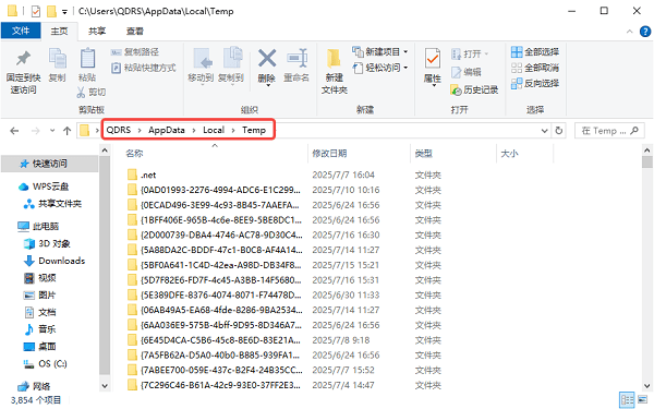 2、在地址栏中输入 %appdata% 或者查找 C:Users你的用户名AppDataLocalTemp 目录。
