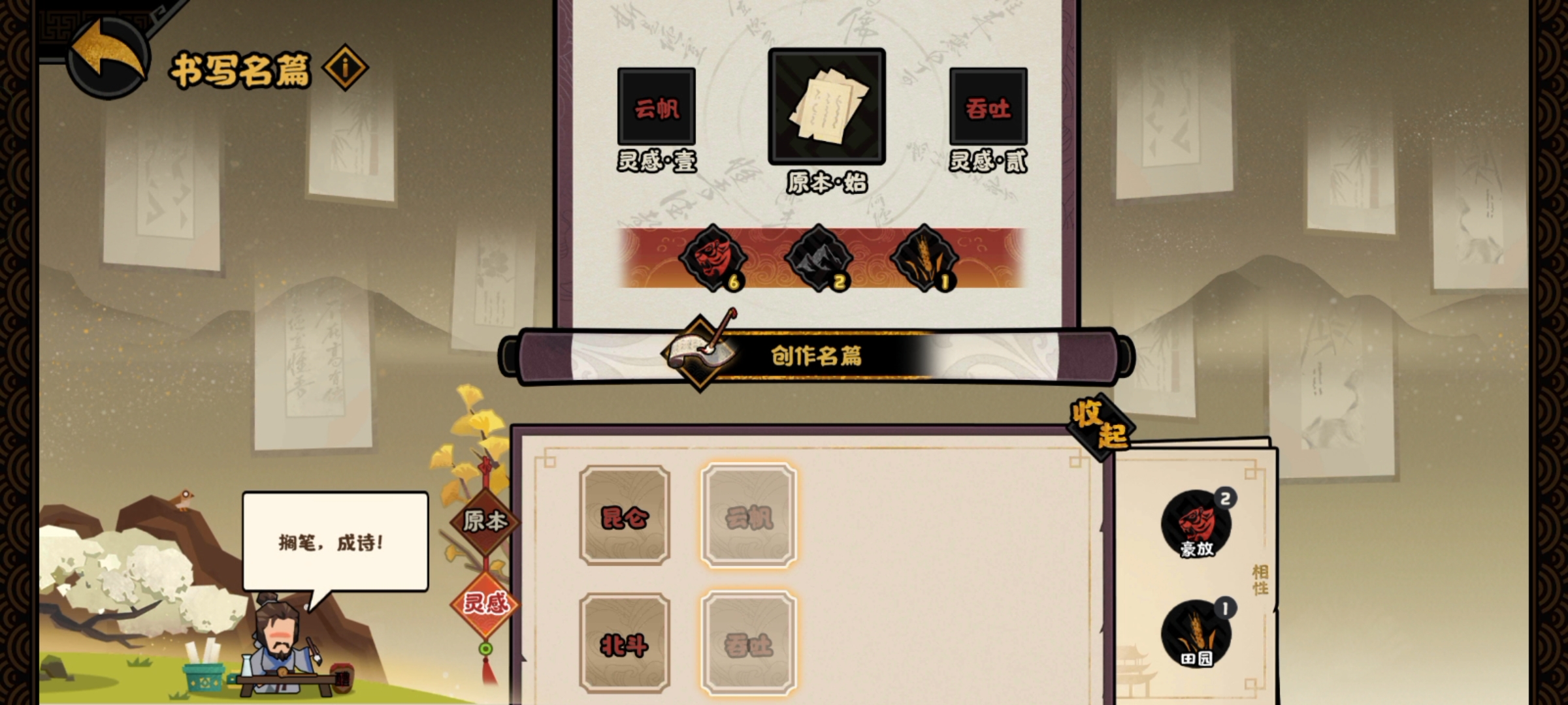 然后就是妙笔生花,拔擢名篇使命可以消耗瓷器多次获取灵感。