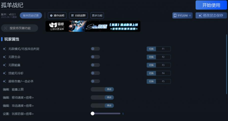 2、功能项出现开启失败或是无法正常生效的情况时,优先检查当前游戏版本与修改器的对应版本是否一致,并尝试重新启动游戏和修改器。